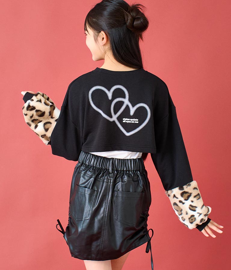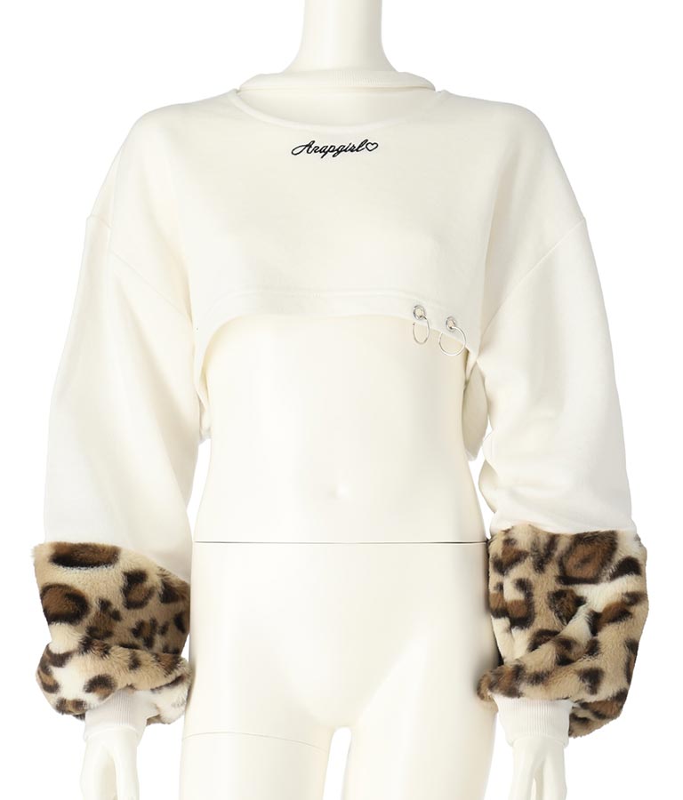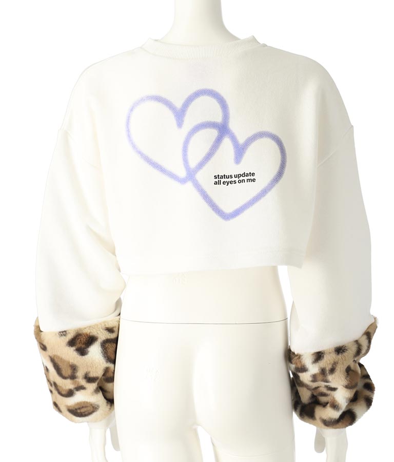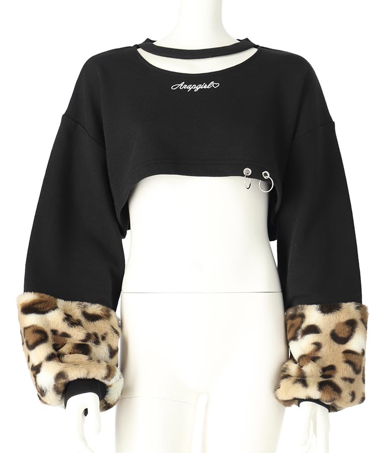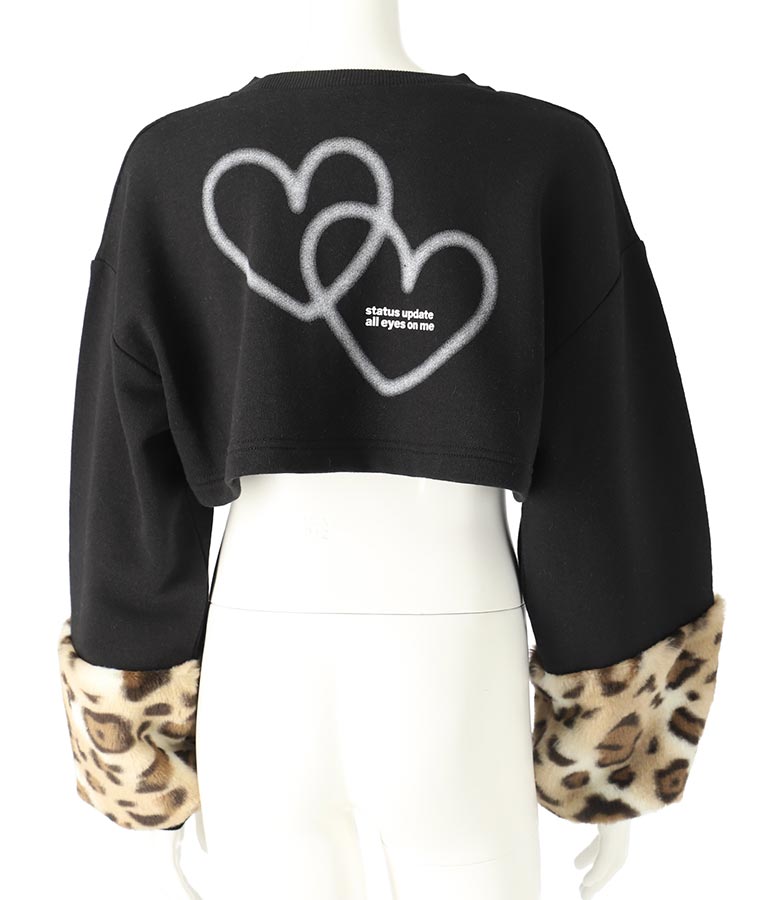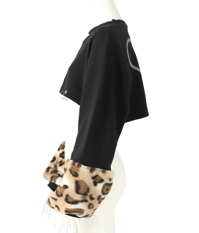 袖 レオパード ファー ショート丈 スウェット トップス -