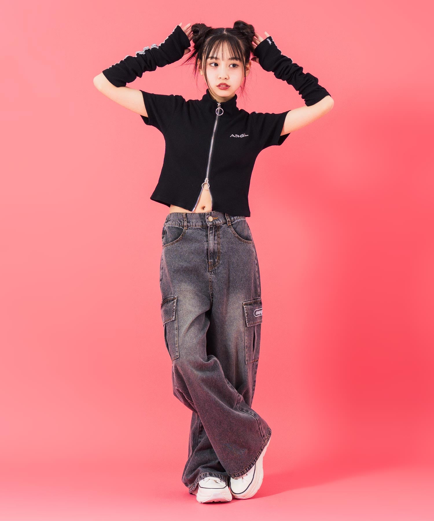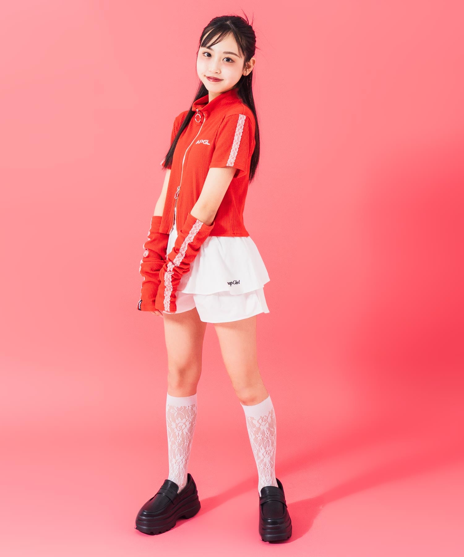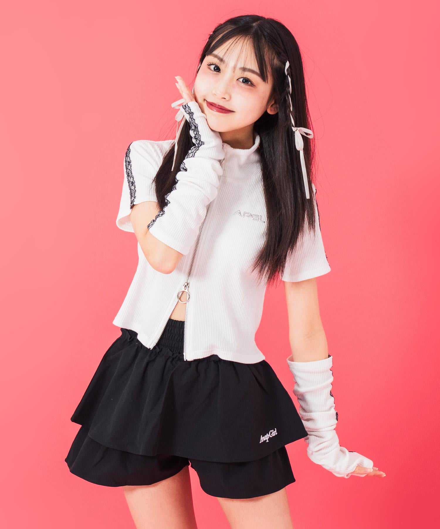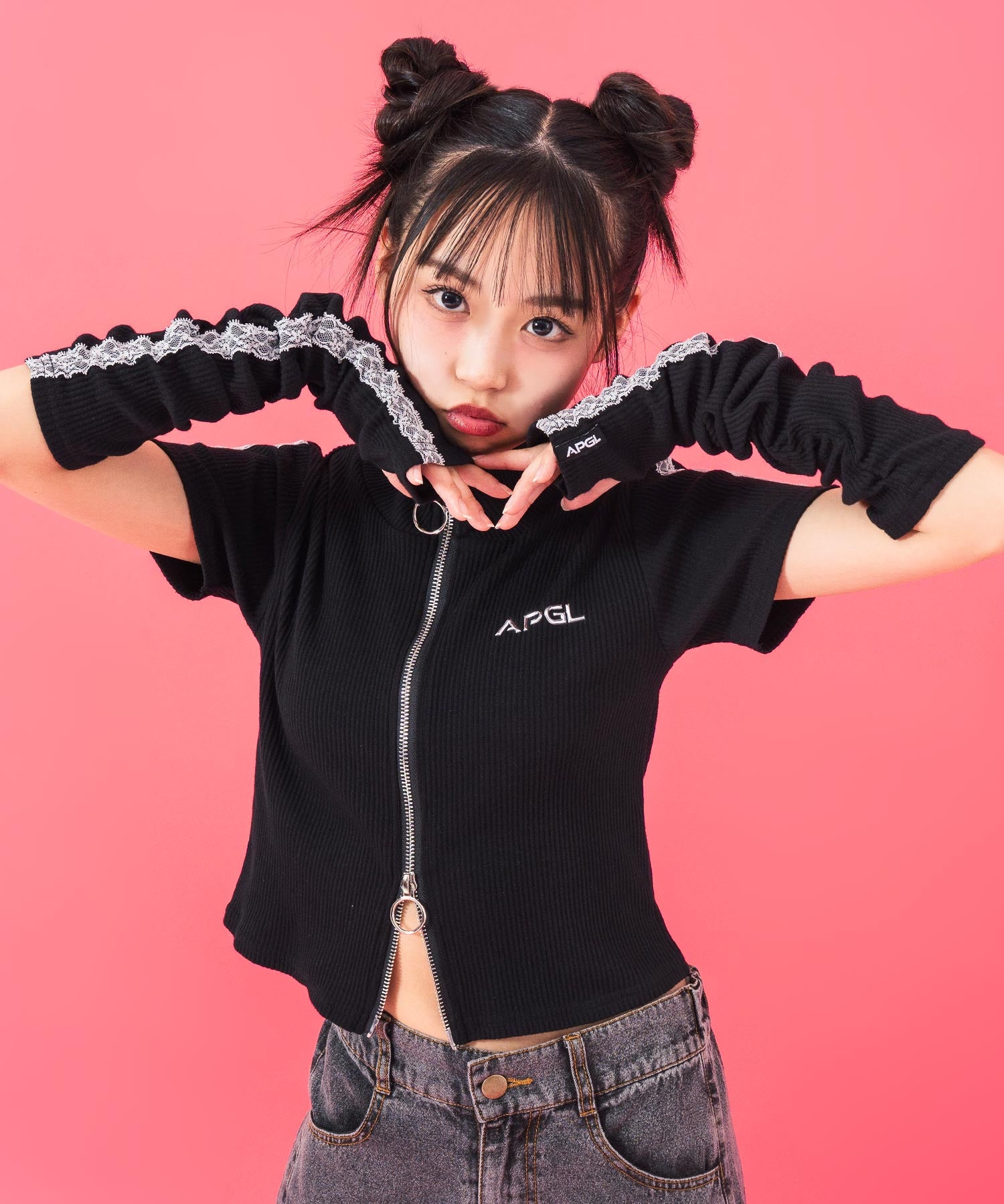レース ライン アームウォーマー 付 ダブル ジップ トップス