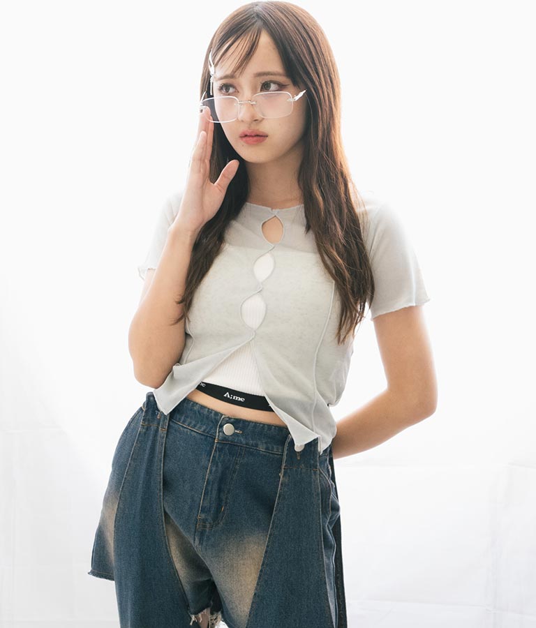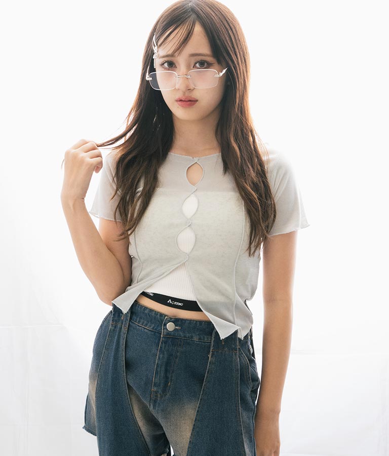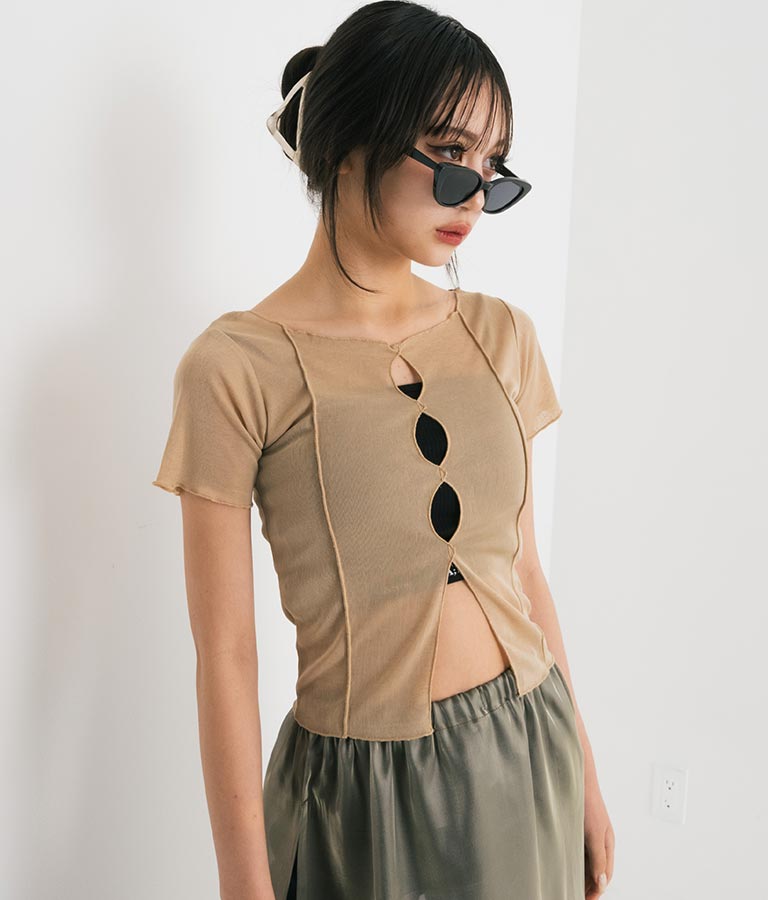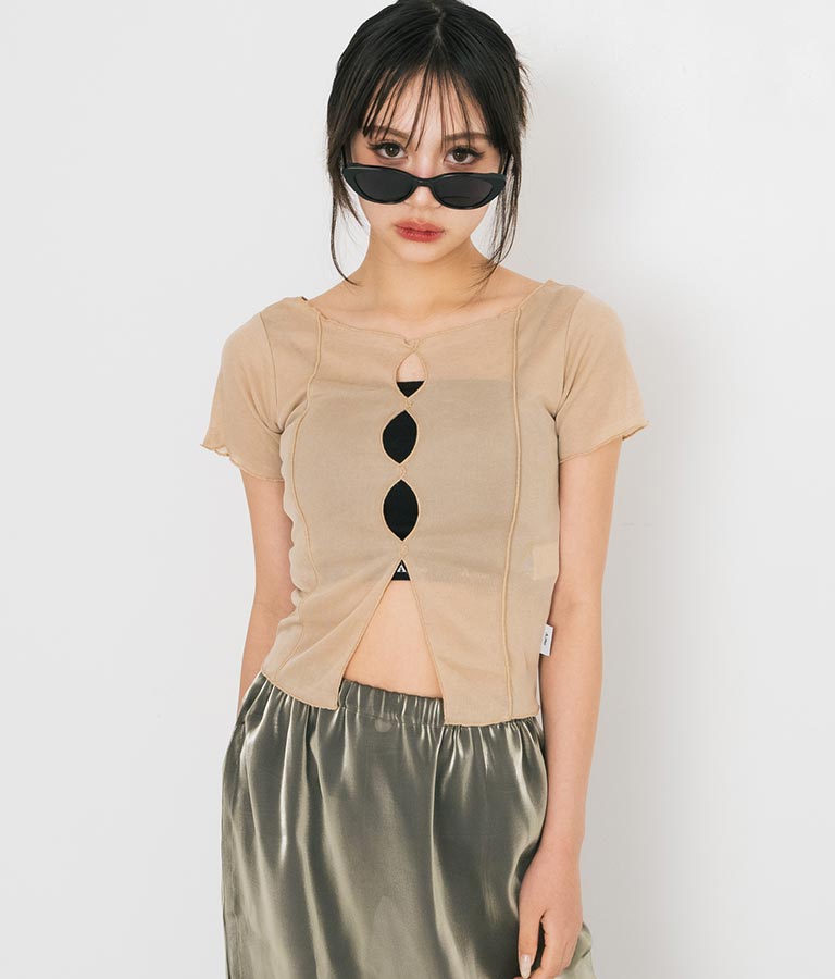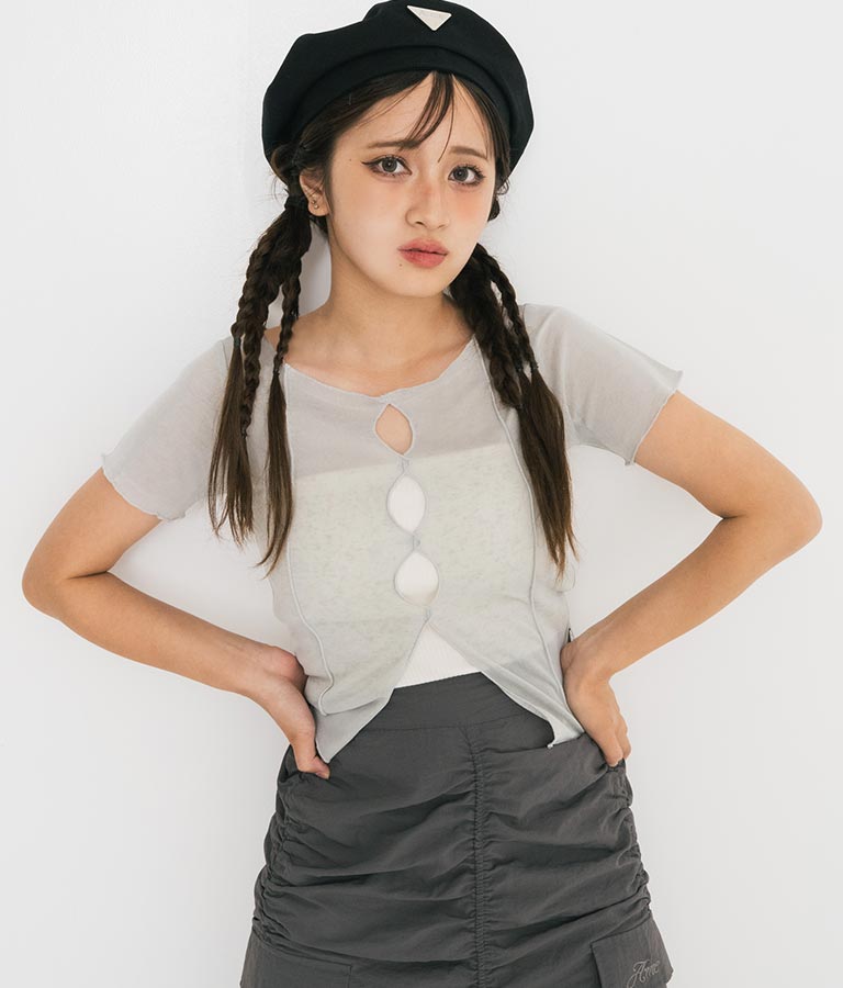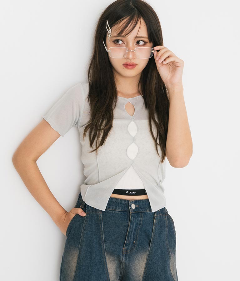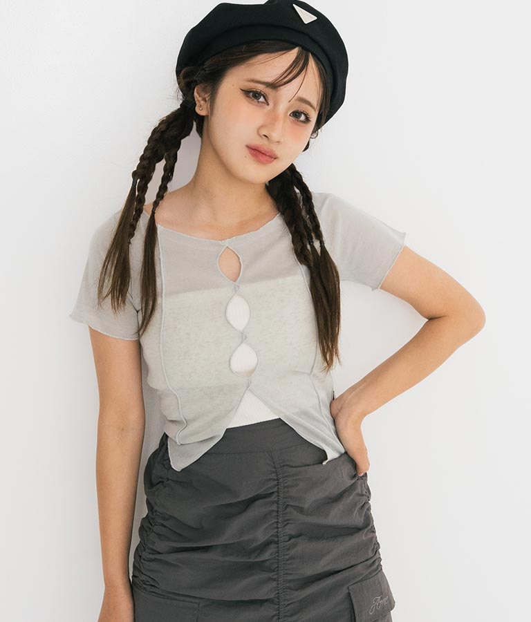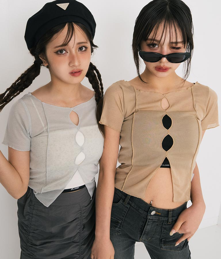 シアー素材の透け感とシルエットがトレンド感抜群のトップス。
