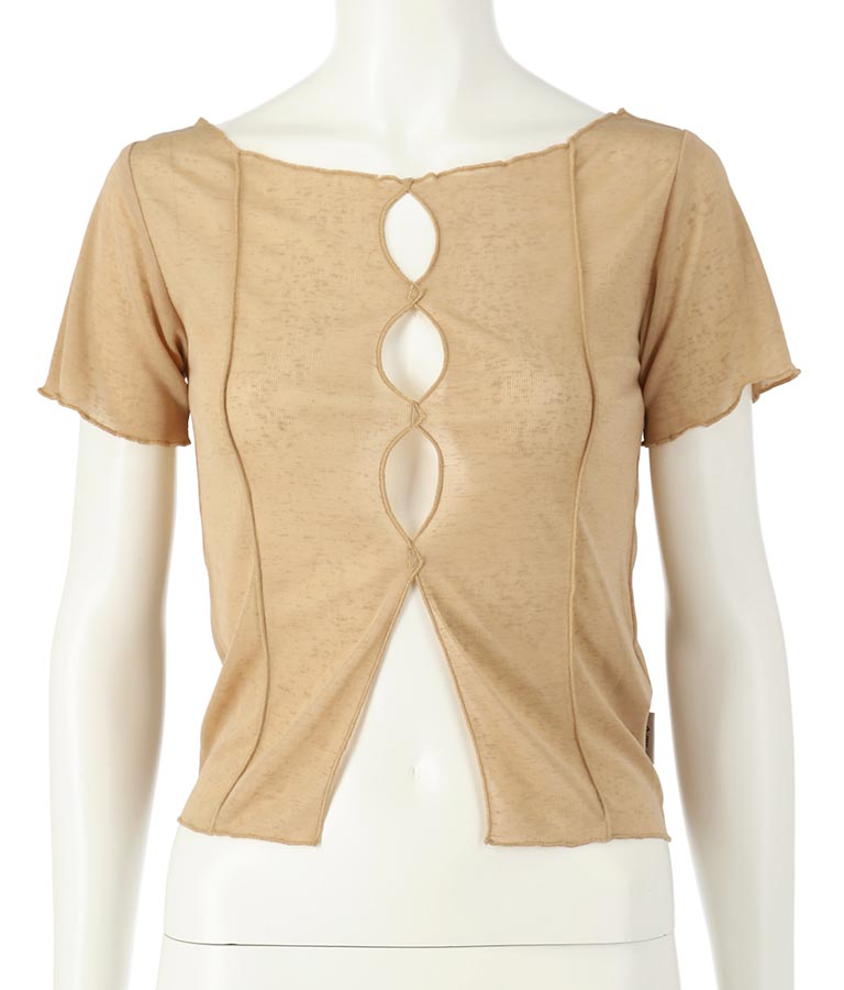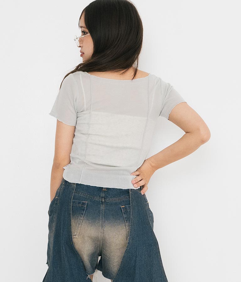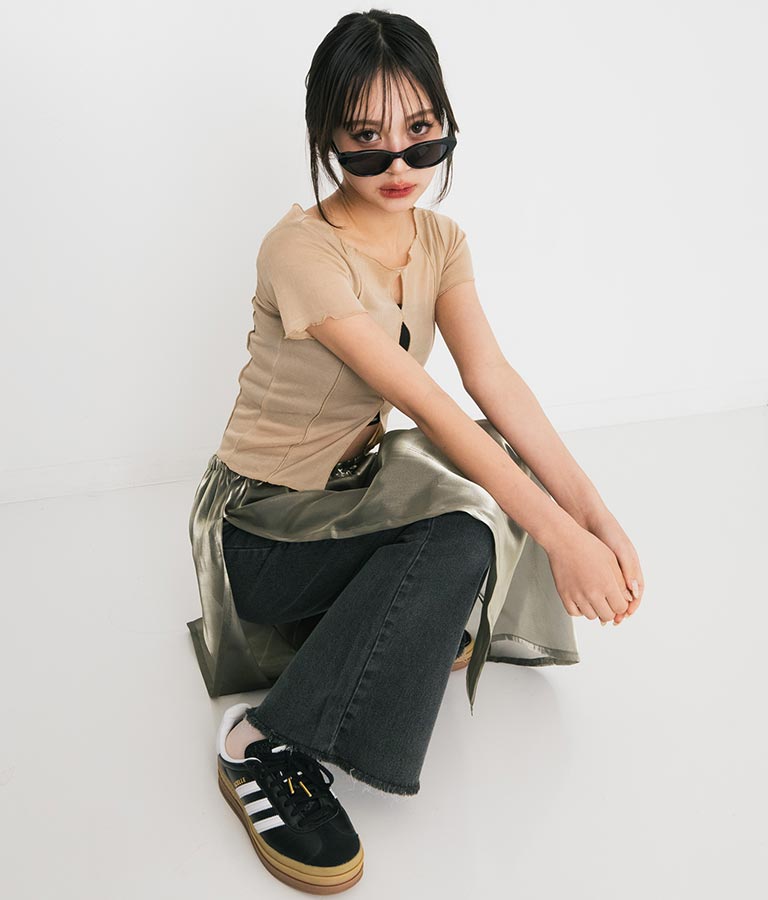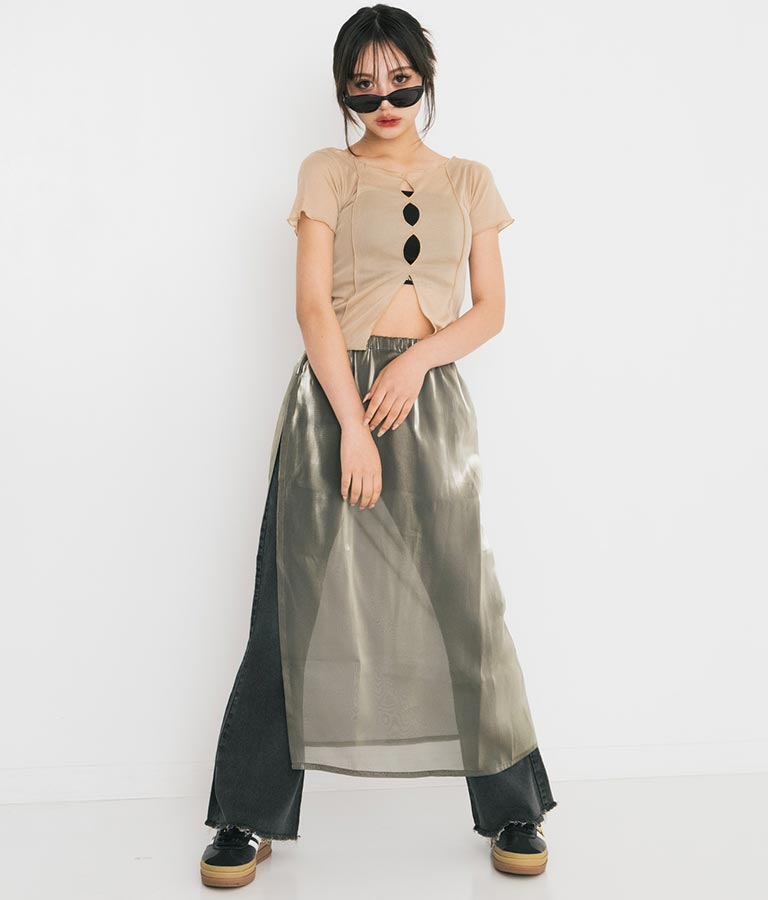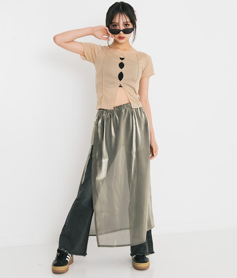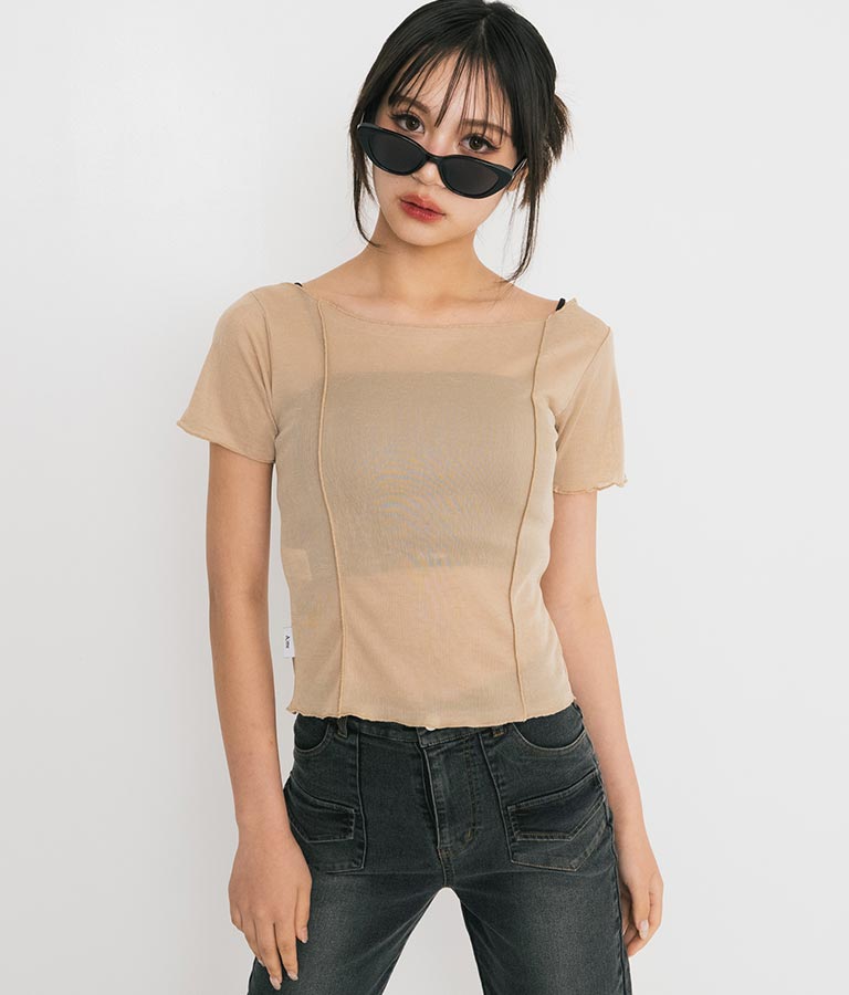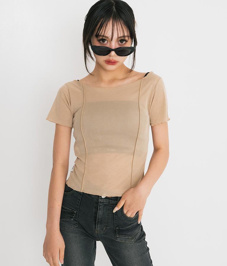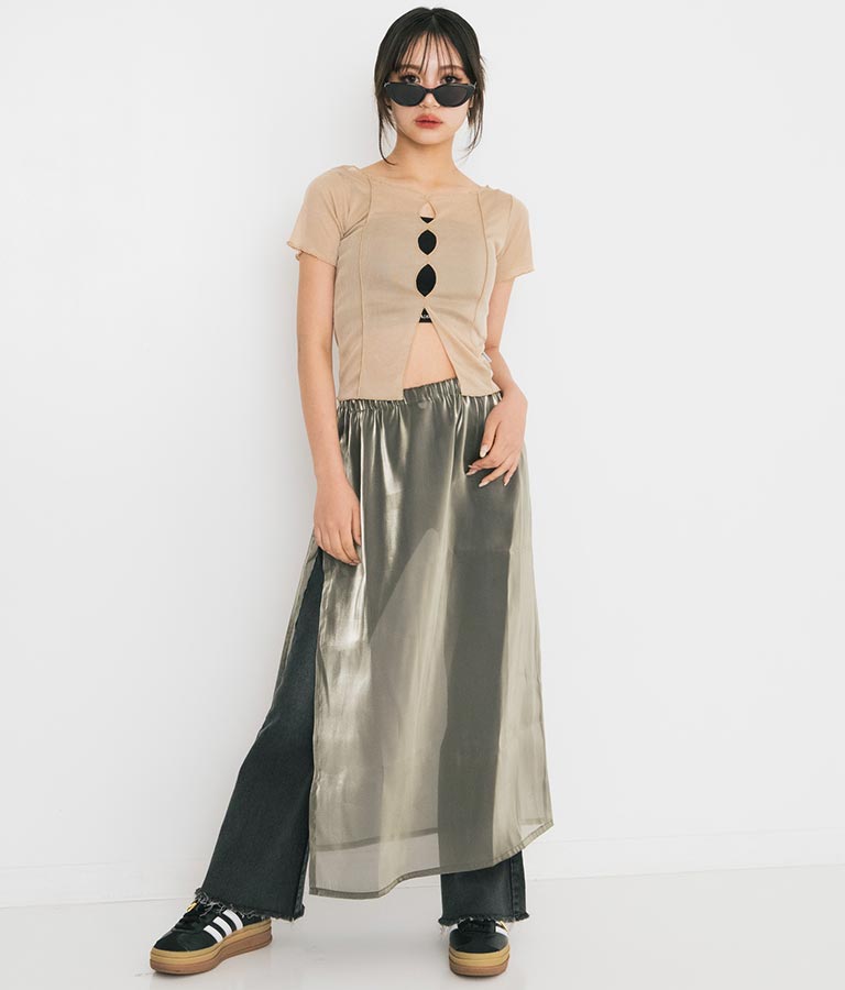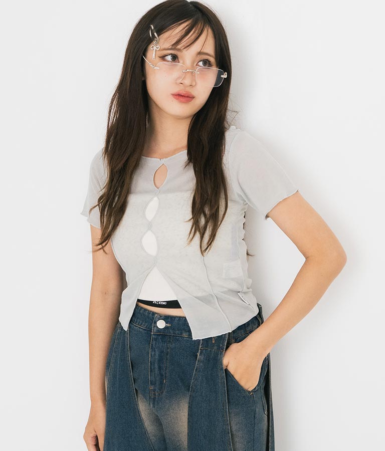 シアー素材の透け感とシルエットがトレンド感抜群のトップス。