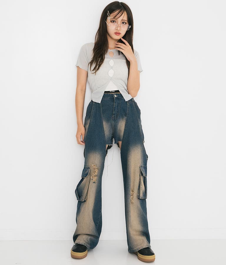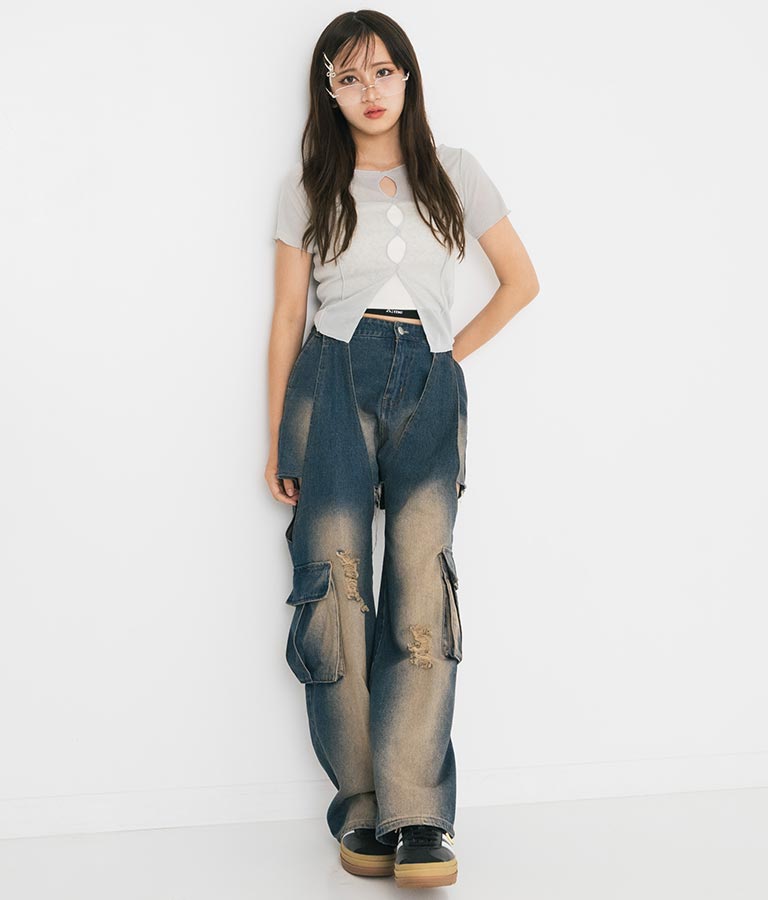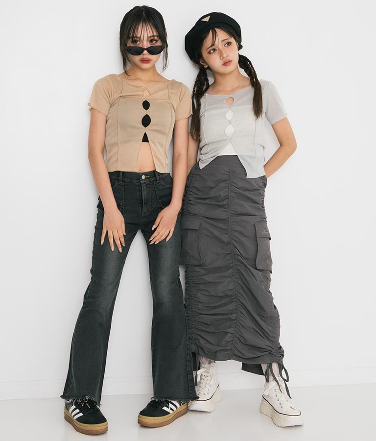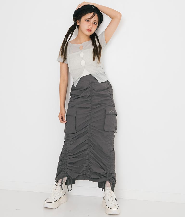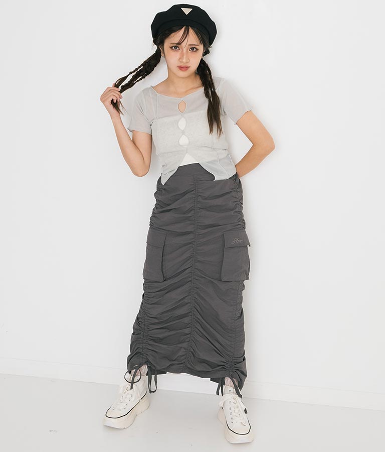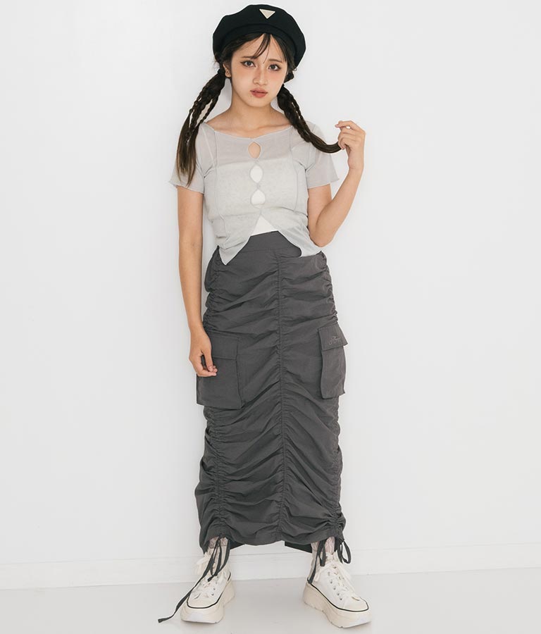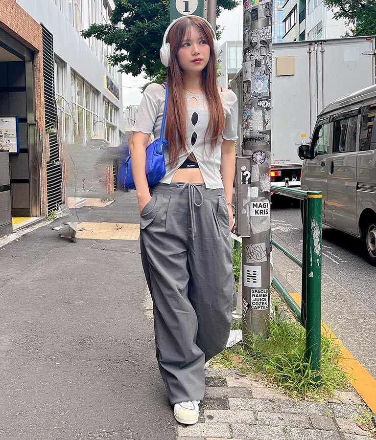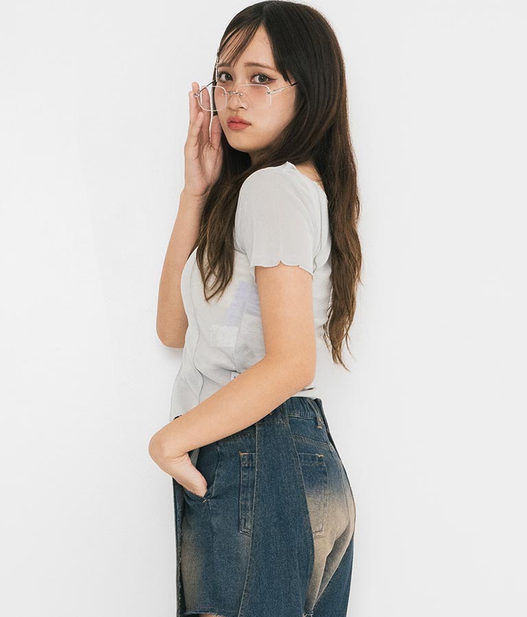 シアー素材の透け感とシルエットがトレンド感抜群のトップス。