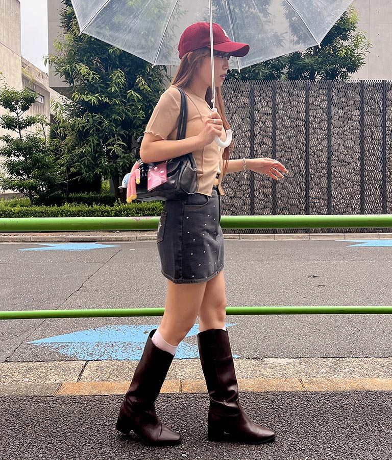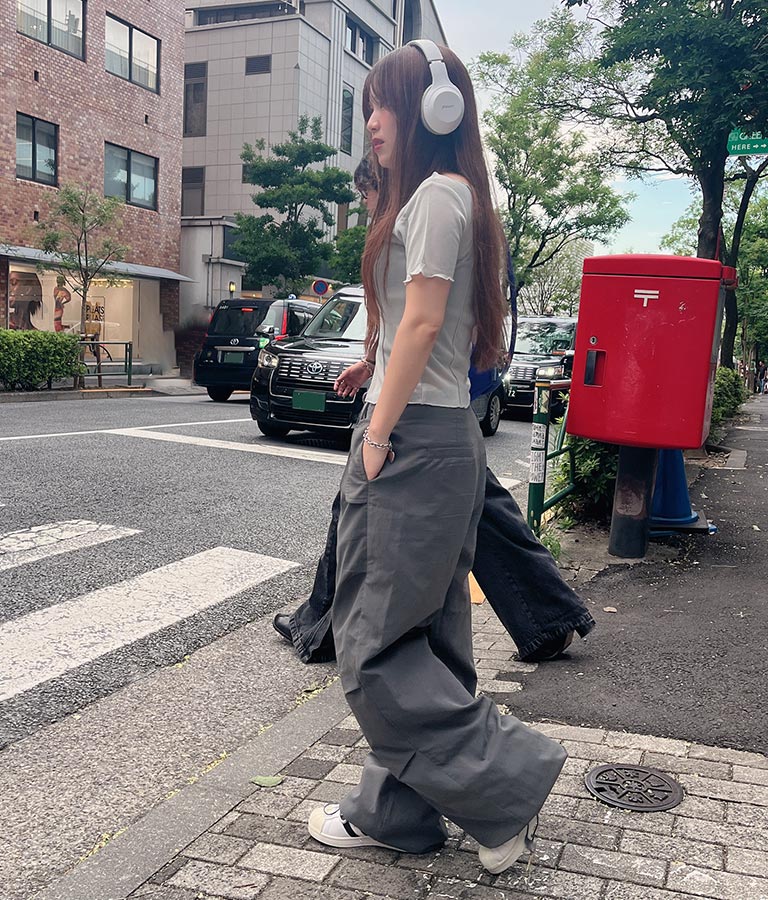 コンパクトなサイズ感なのでボリュームのあるボトムやシューズを合わせるのがおススメ◎