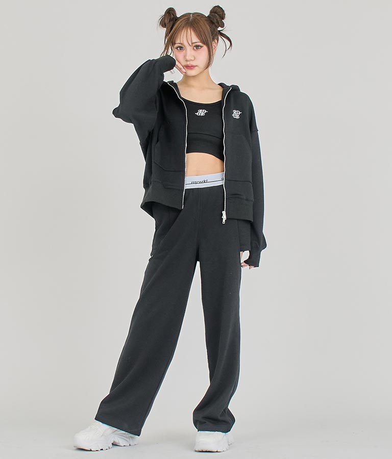 フロントのロゴ刺繍がアクセントになり、普段使いからダンス、スポーツシーンまで幅広く活躍するアイテムです。