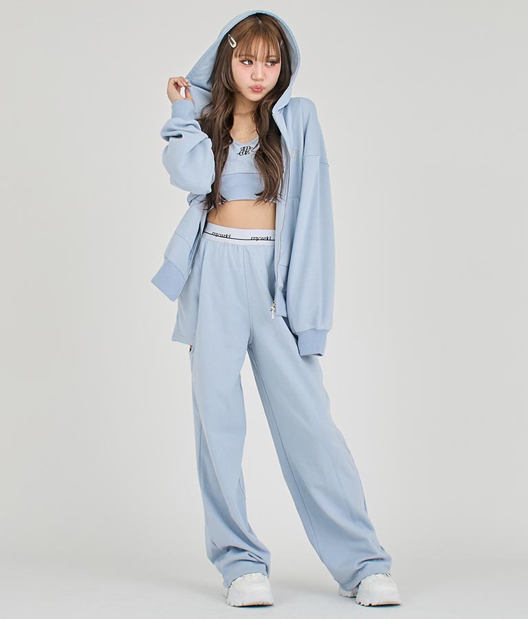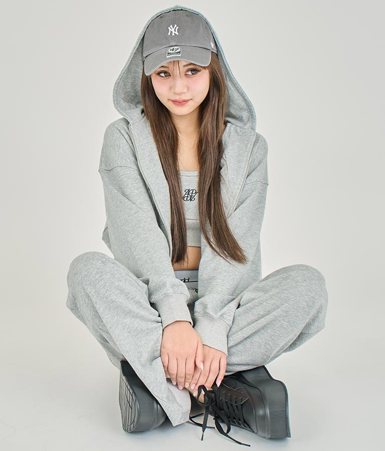 同素材を使用した【サイドスリットデザイン スウェット パンツ】【シルバー 3Dプリント オーバーサイズ ダブルジップ パーカー】とセットアップでの着こなしもおすすめ◎