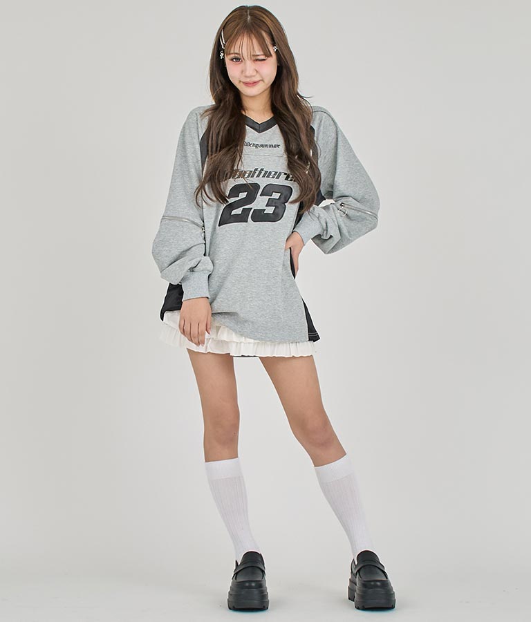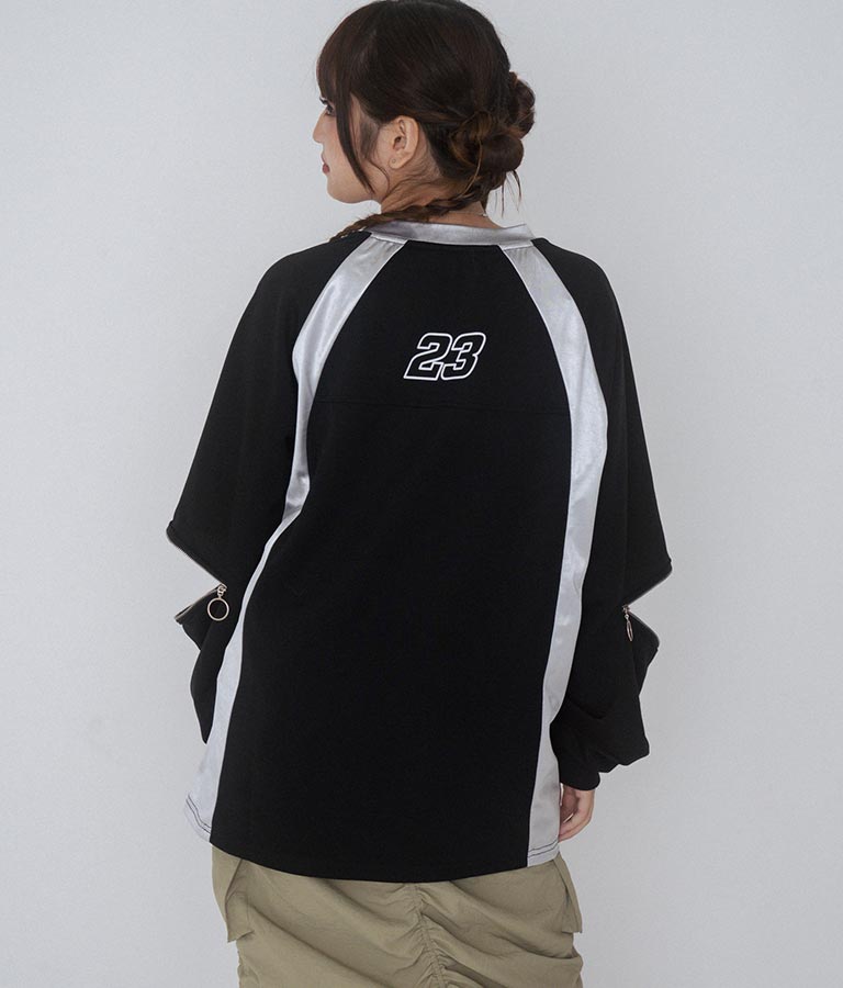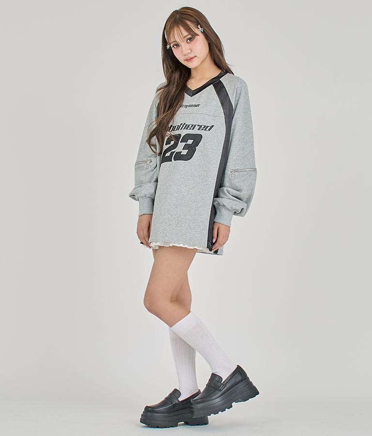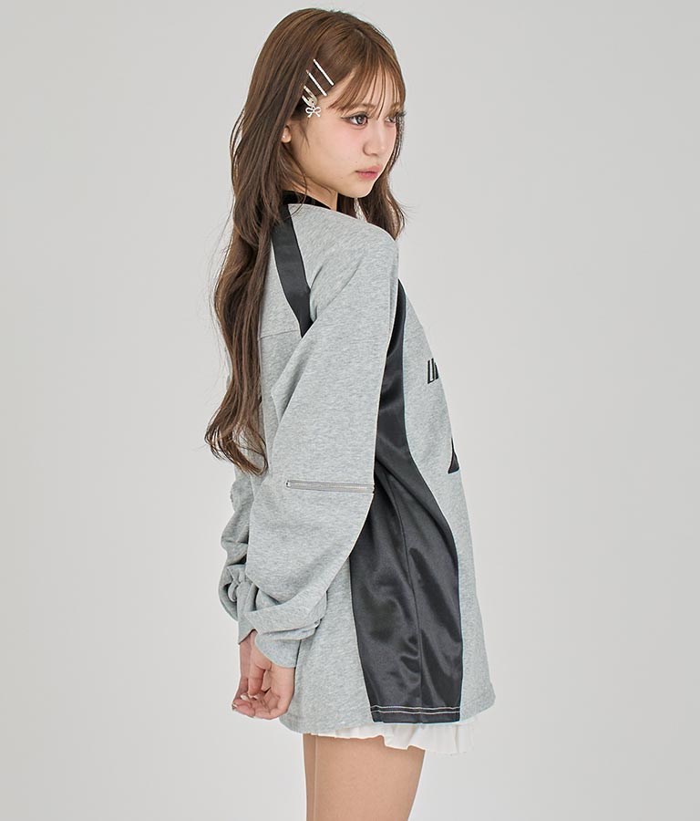 【ティーンズライン】袖 ジップ ゲーム ロゴ オーバー スウェット トップス (M、Lサイズ展開) -