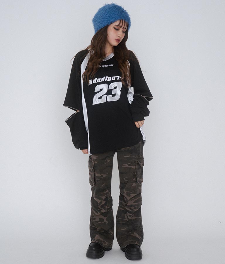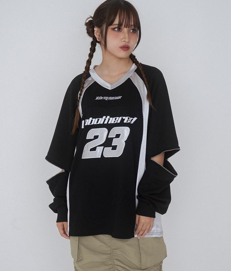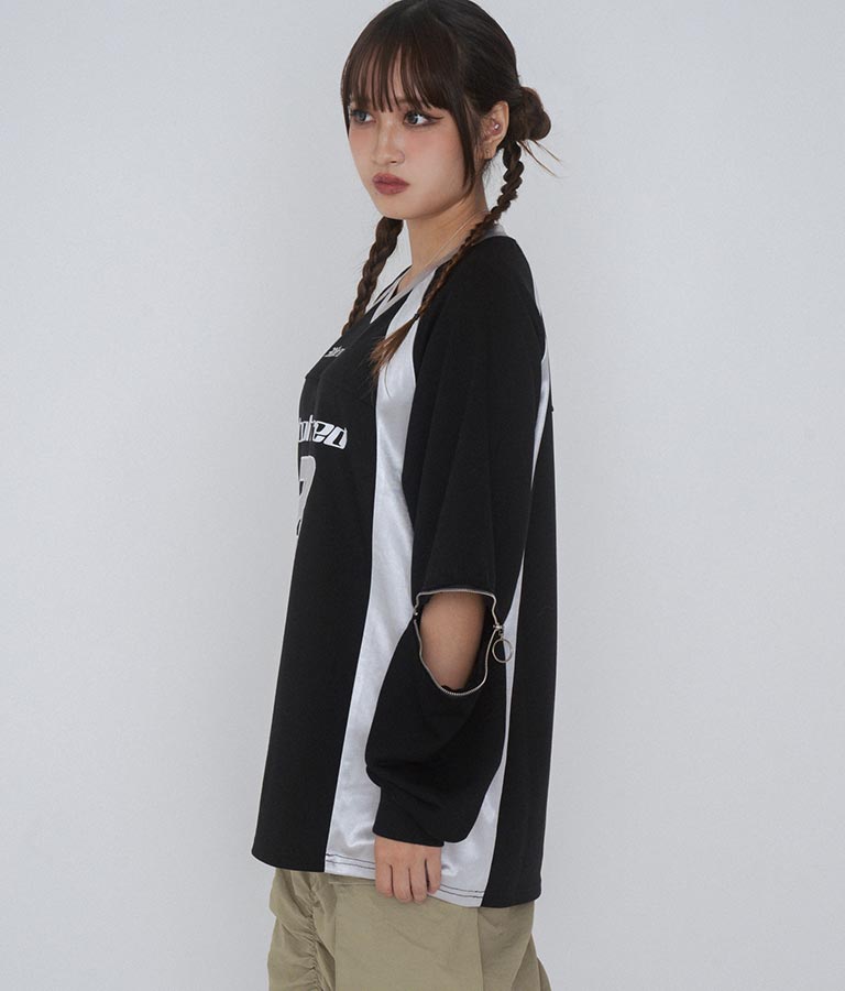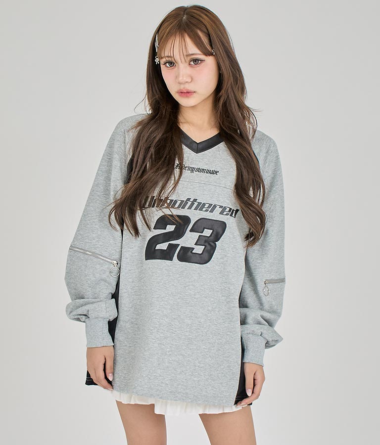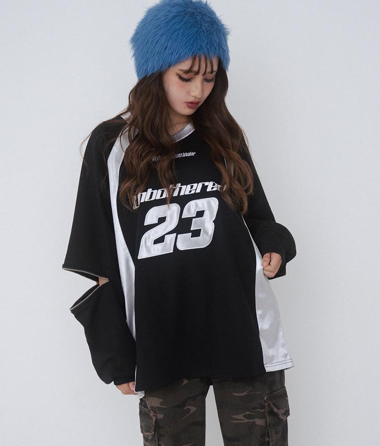 【ティーンズライン】袖 ジップ ゲーム ロゴ オーバー スウェット トップス (M、Lサイズ展開) -