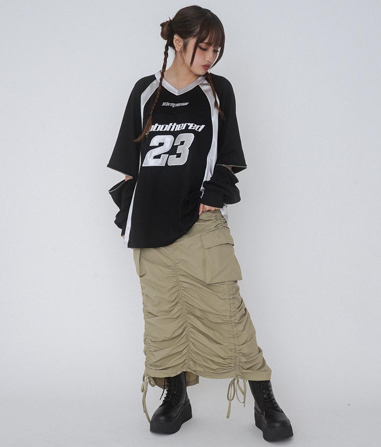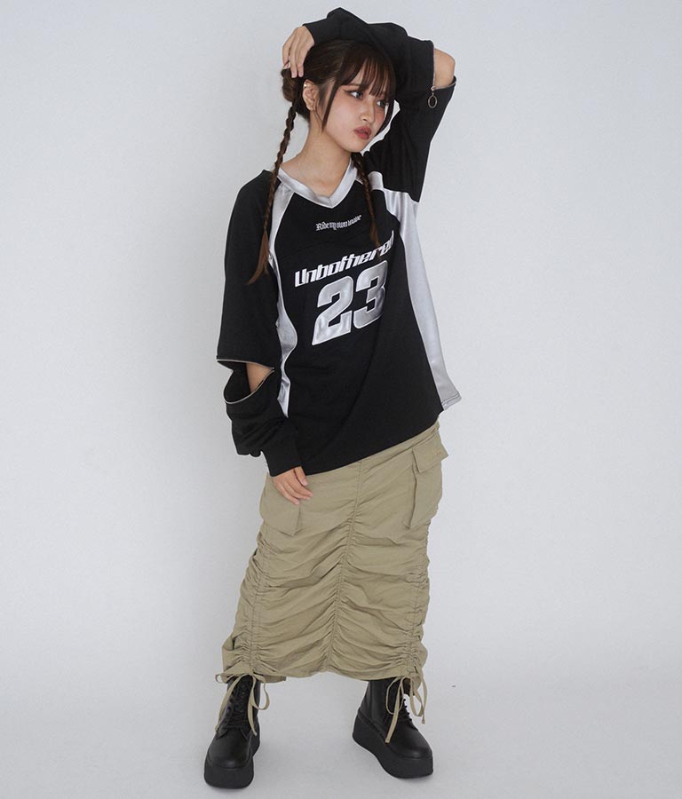 スカートやロングパンツなど、合わせるボトムスによって幅広いスタイリングが可能です。