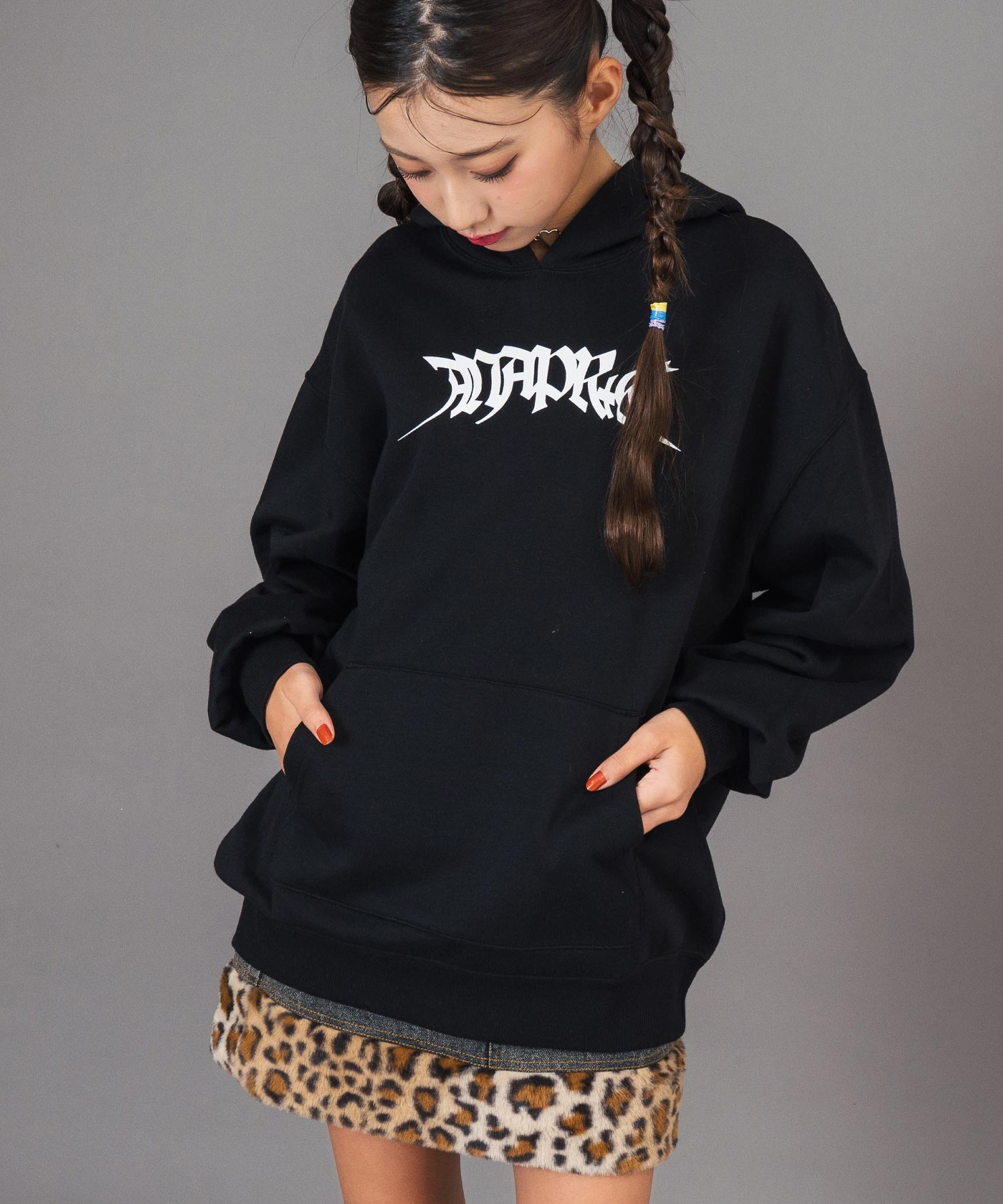 ストリートに映える存在感。個性をまとうスプレープリントパーカー。