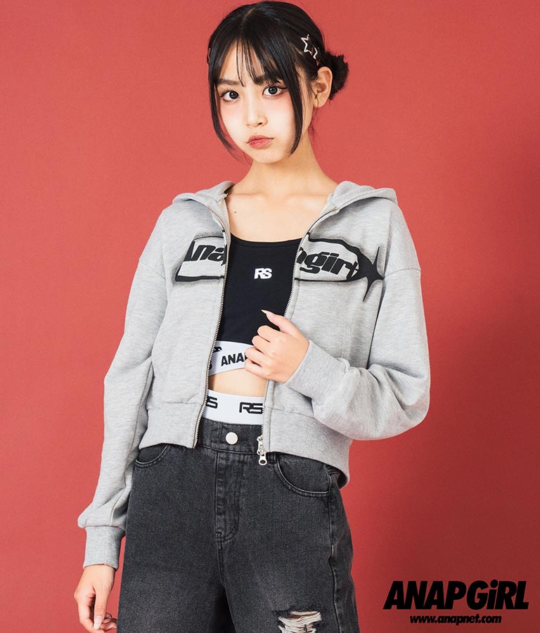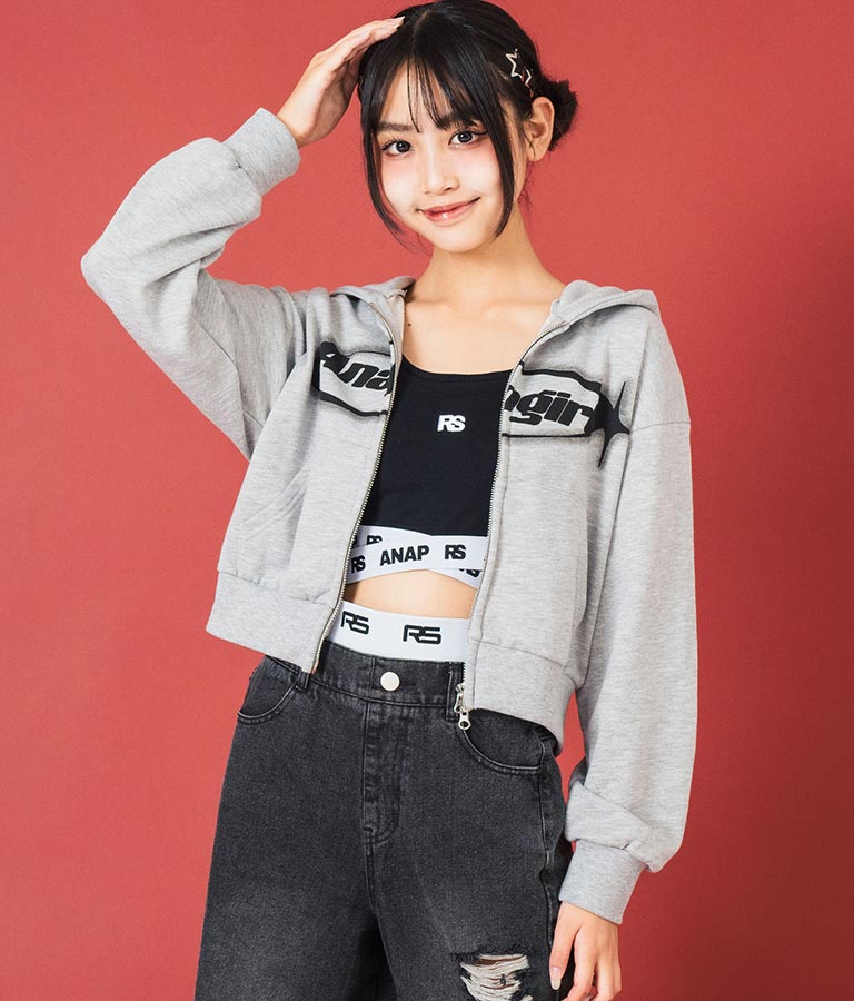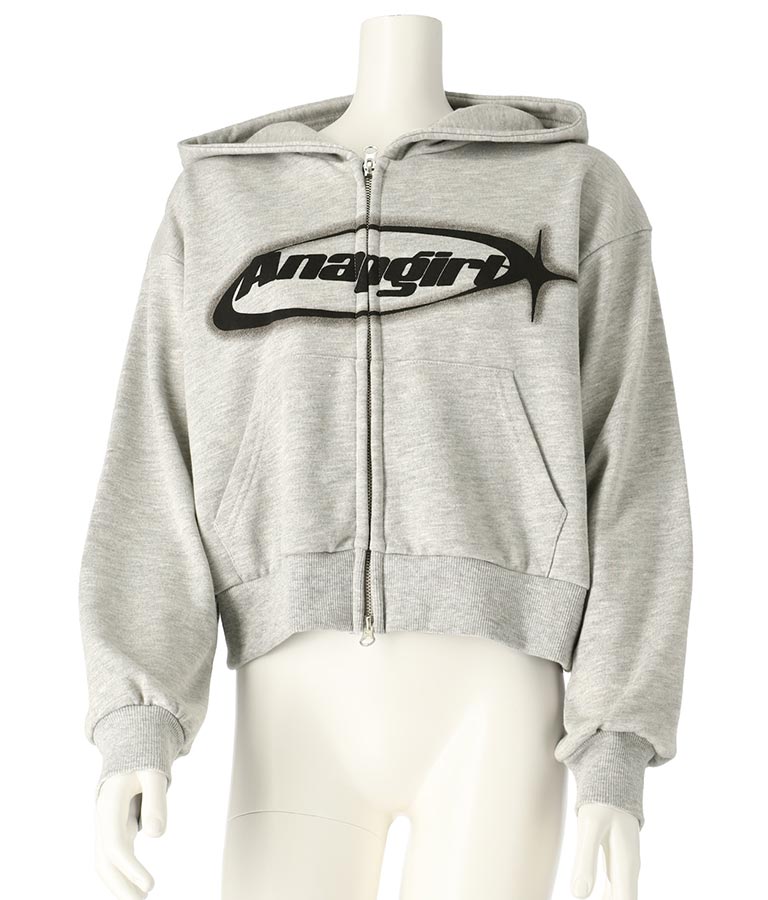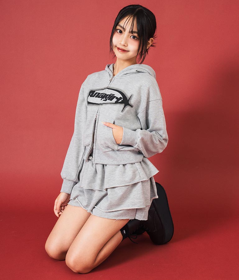 ダブルジップ クロップド スウェット パーカー 【セットアップ着用可】 914-7569