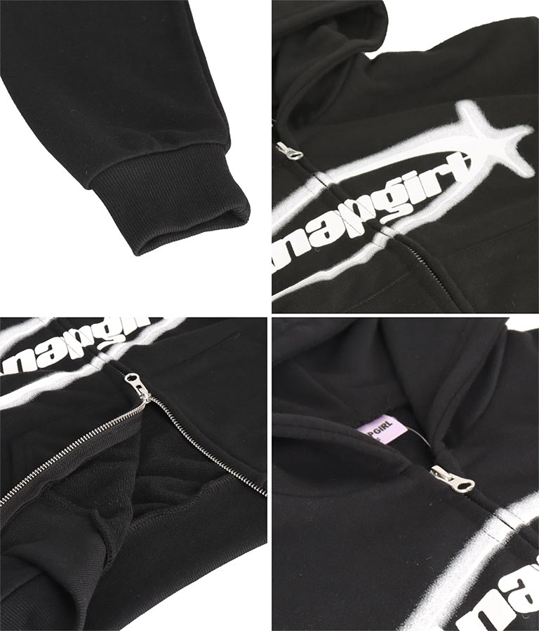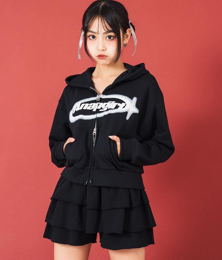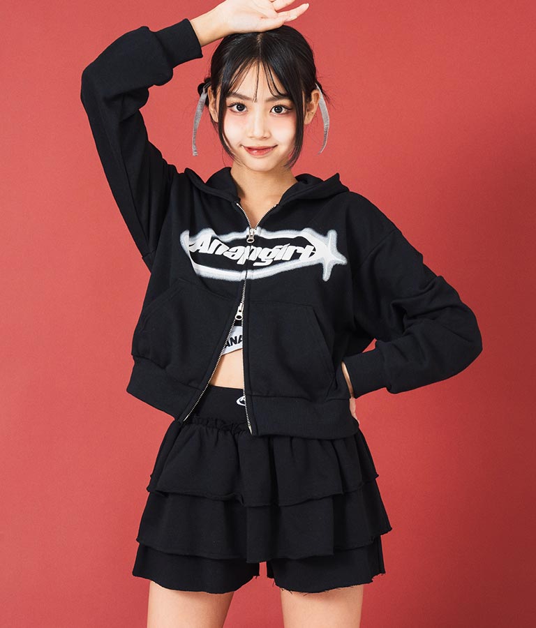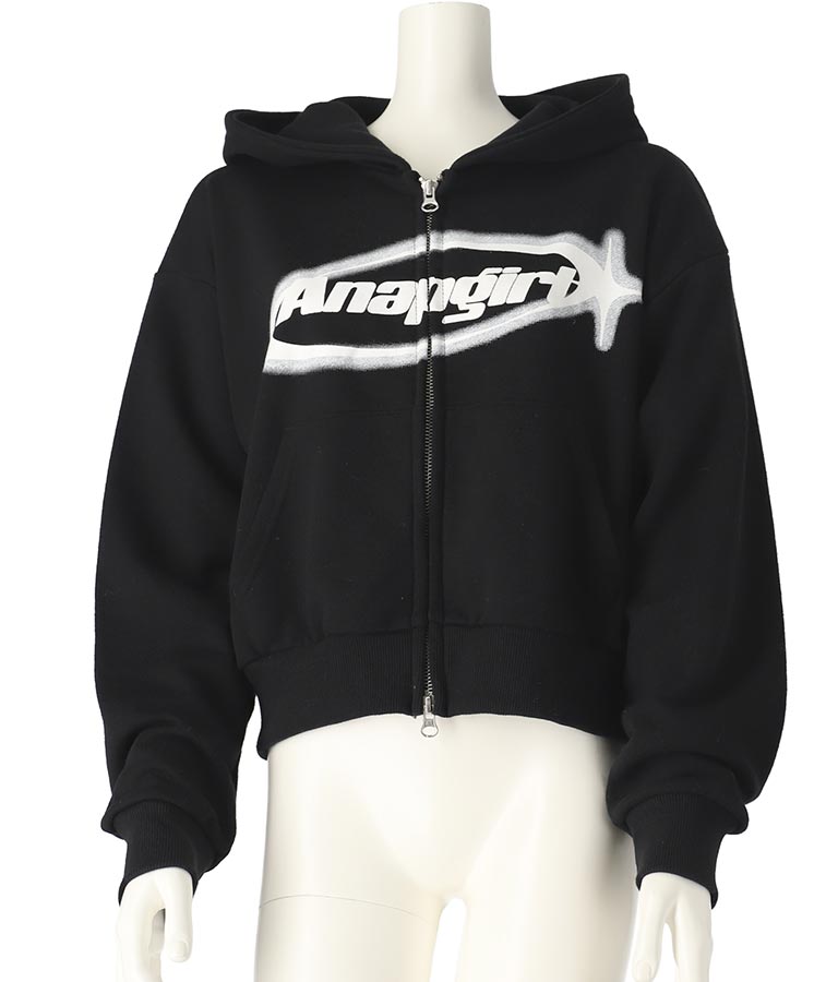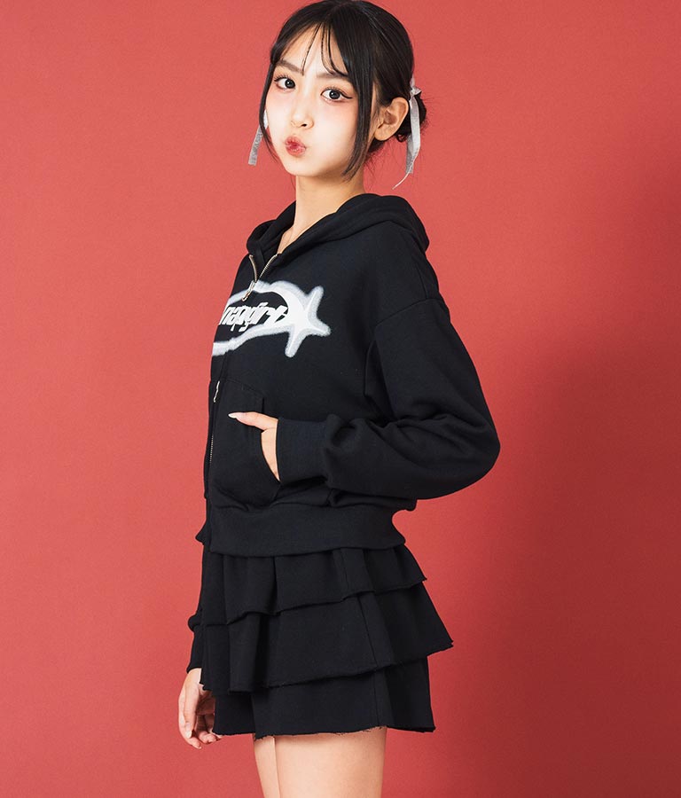 ダブルジップ クロップド スウェット パーカー 【セットアップ着用可】 914-7569