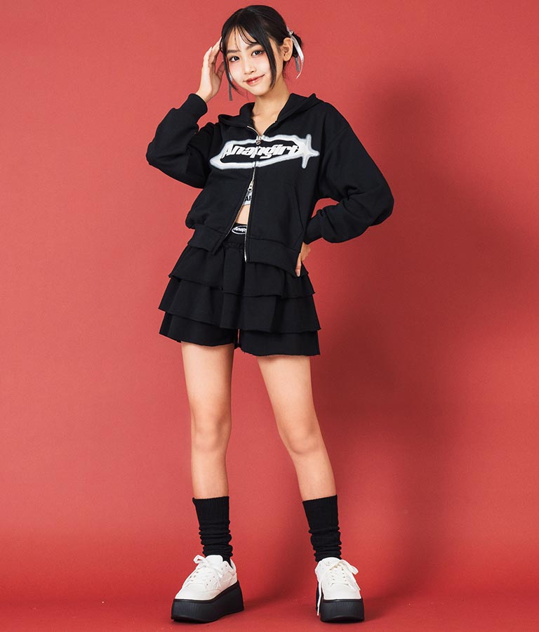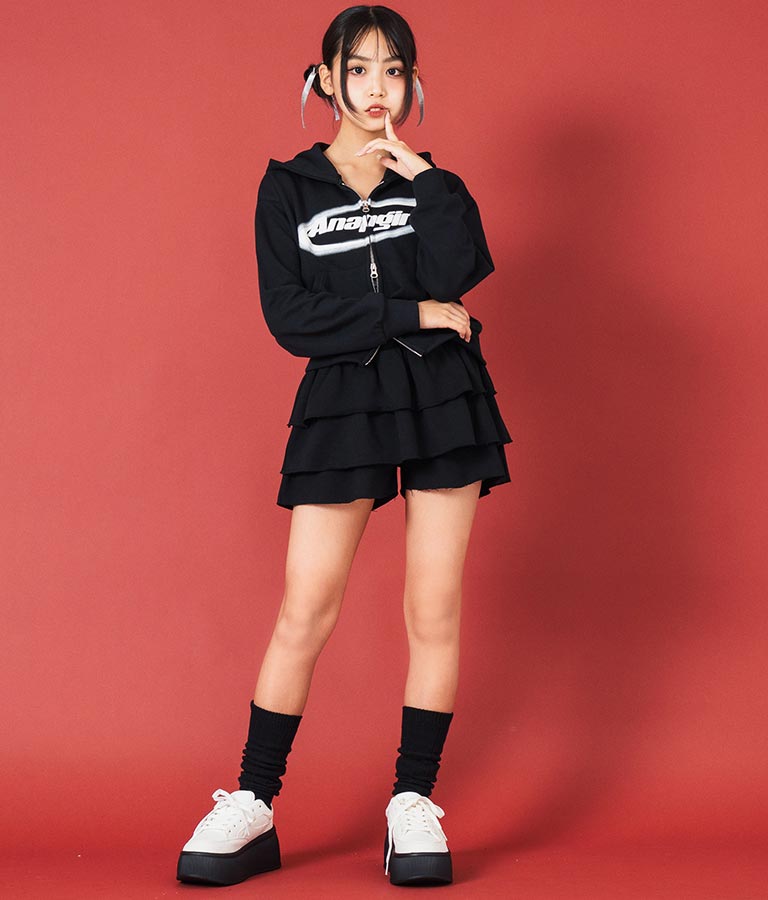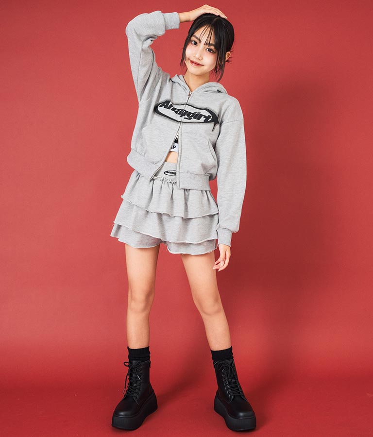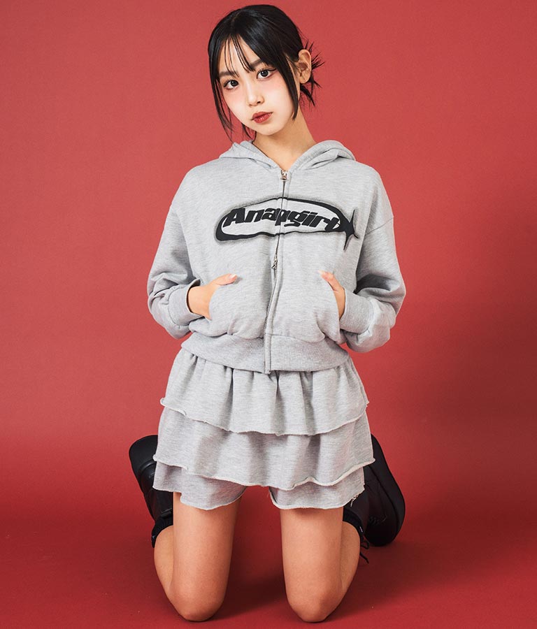 同素材を使用した【スウェット ティアード スカパン】とセットアップでの着こなしもおすすめ◎