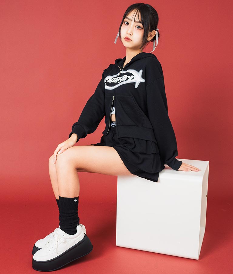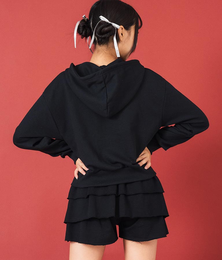 ダブルジップ クロップド スウェット パーカー 【セットアップ着用可】 ダブルジップ クロップド スウェット パーカー 【セットアップ着用可】