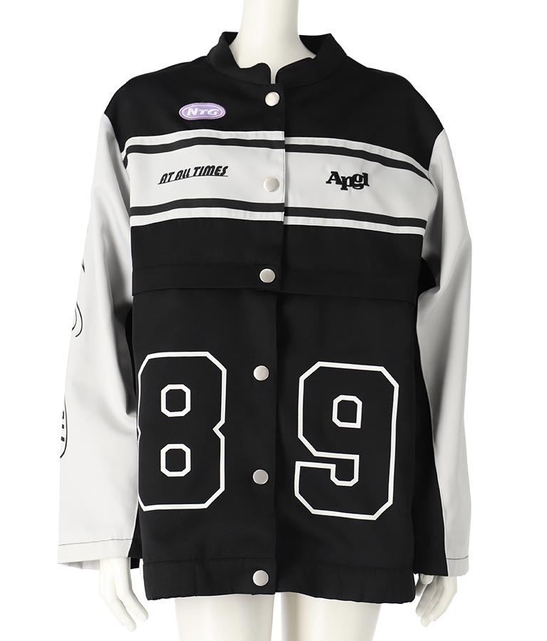 モノトーンのカラーリングにロゴやワッペンが施されたおしゃれな一枚!