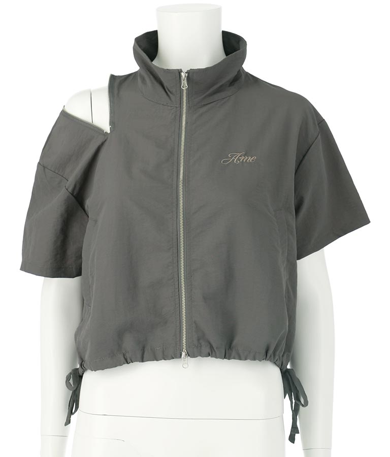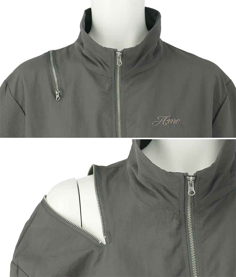 シンプルなデザインながら、肩にジップ付きで雰囲気を気分で変えて着用できます。