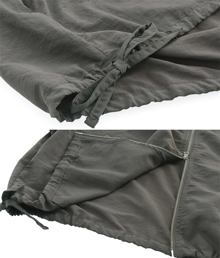 裾にも調節可能な紐付きのため、お好みでシルエットに変化を加えることが可能。