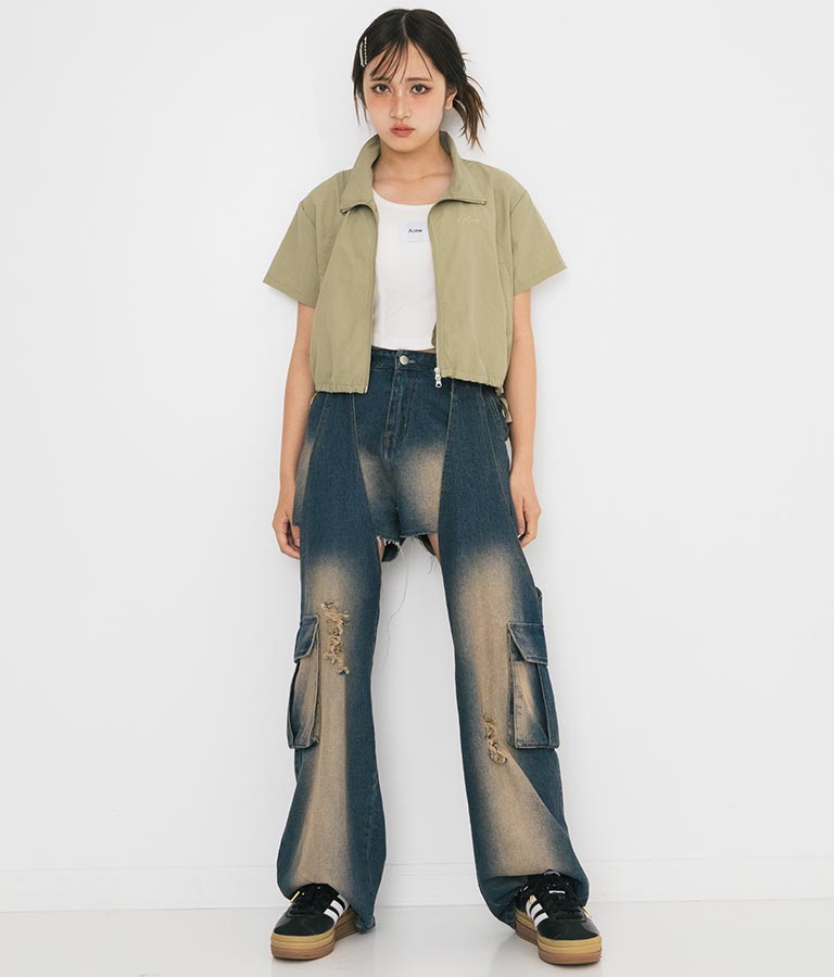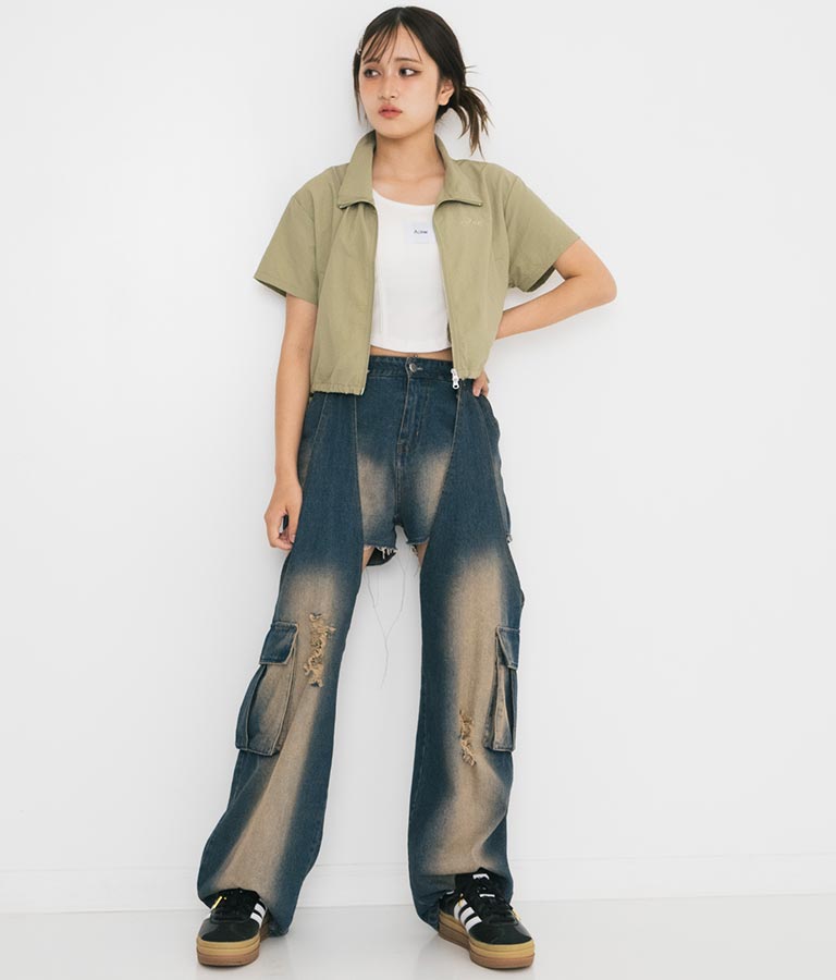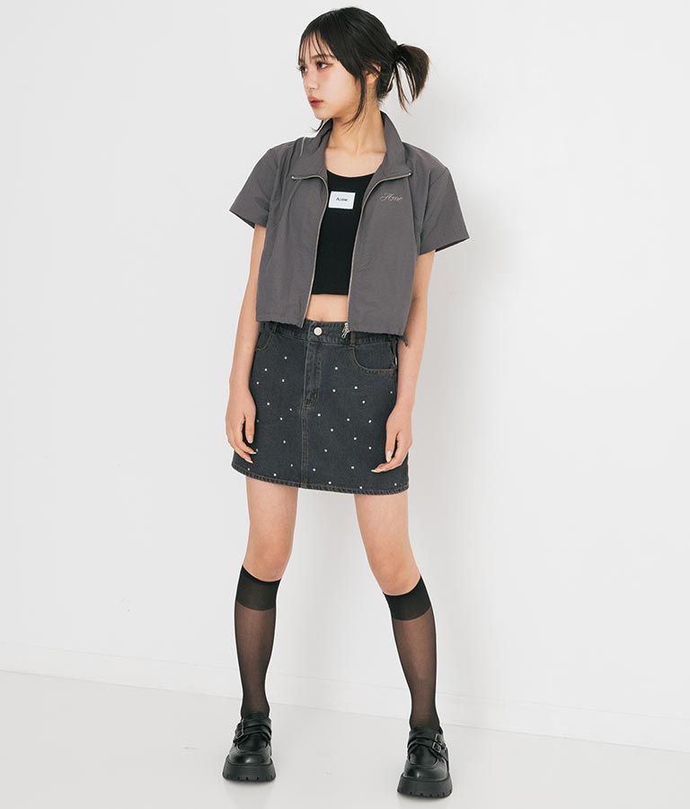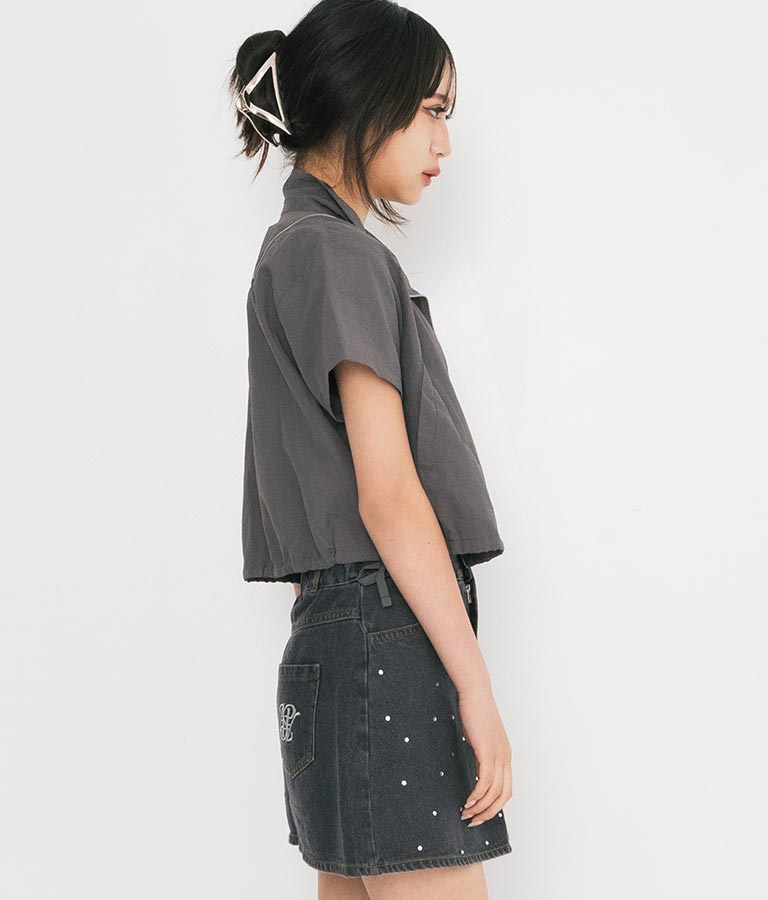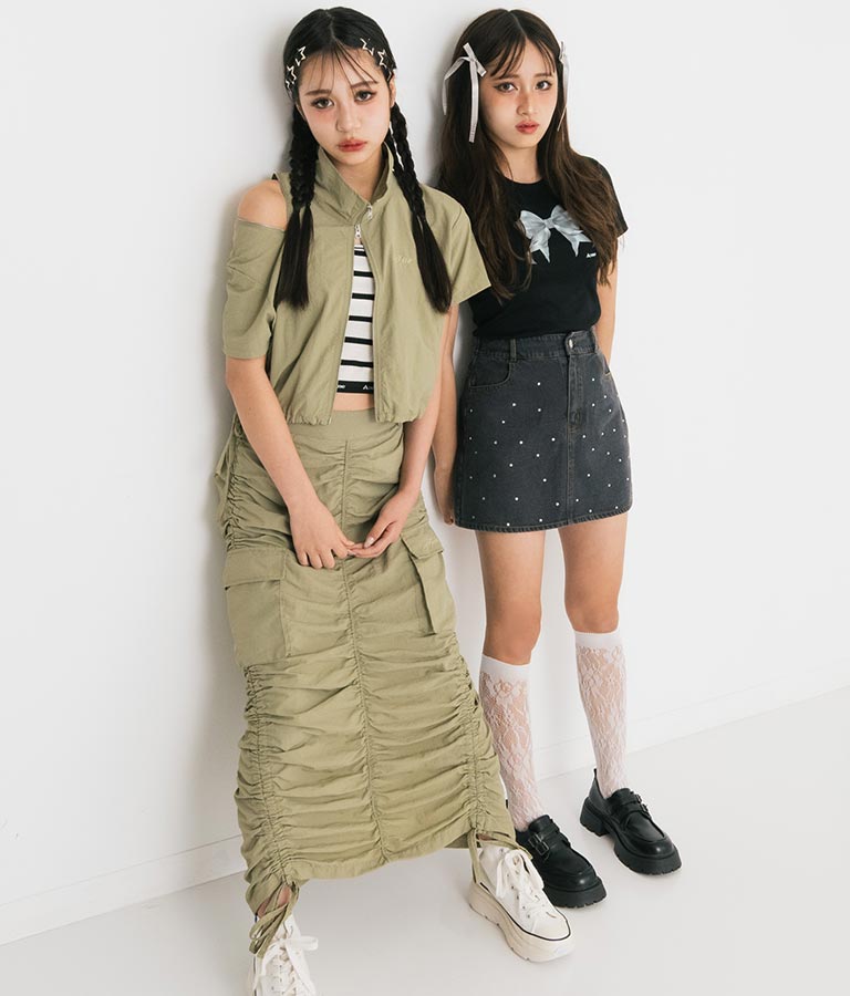 同素材を使用した【シャーリング ナイロン カーゴ スカート】とセットアップでの着こなしもおすすめ◎