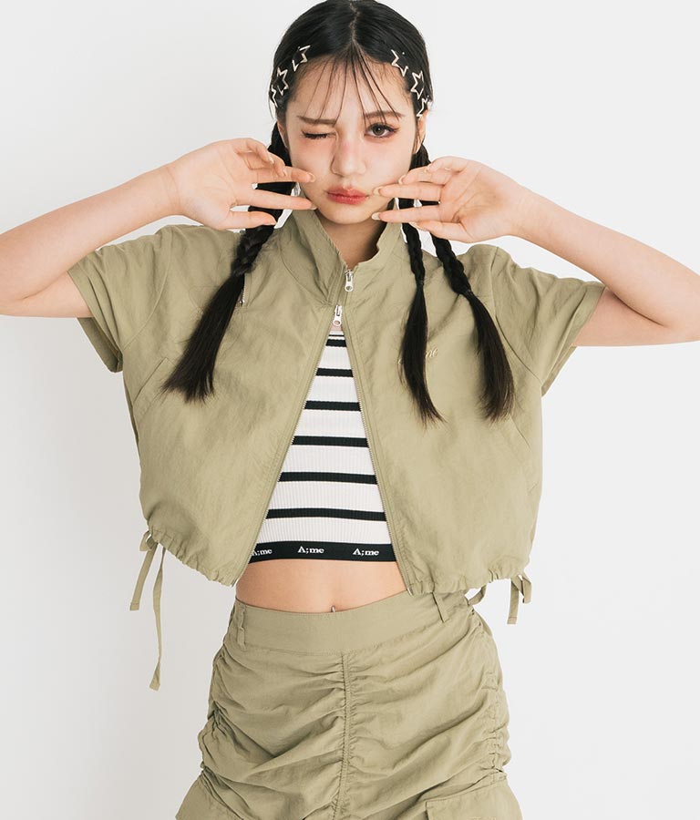 多機能なナイロン素材を使用したアクティブシーンにも使用できる半袖のブルゾン。