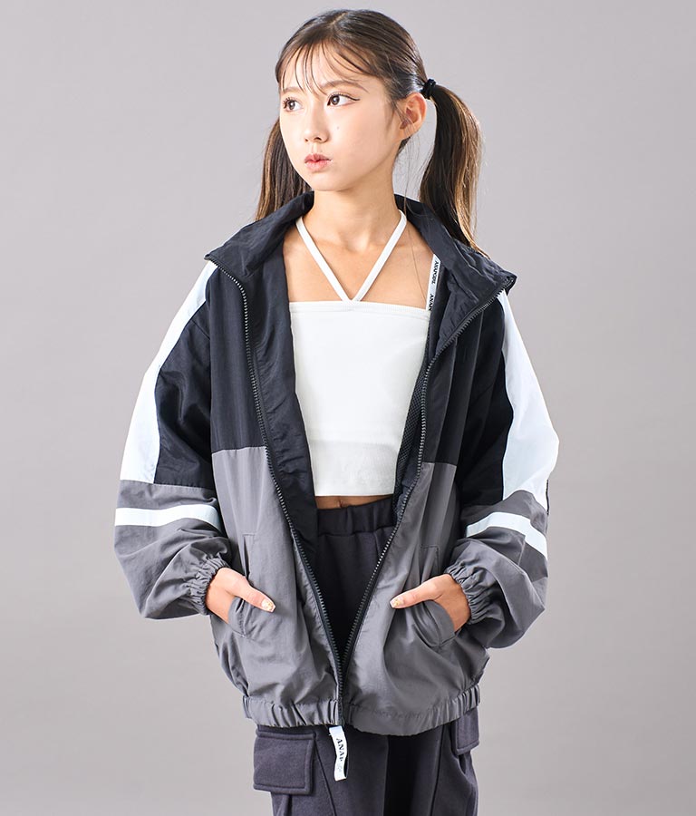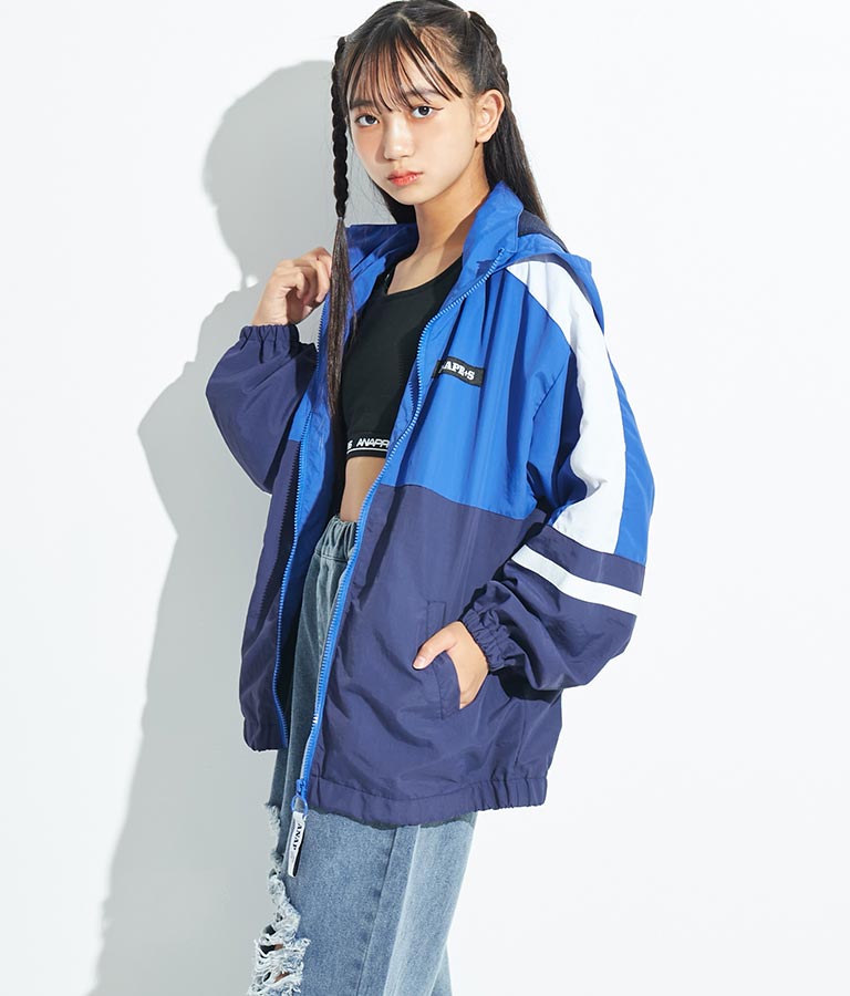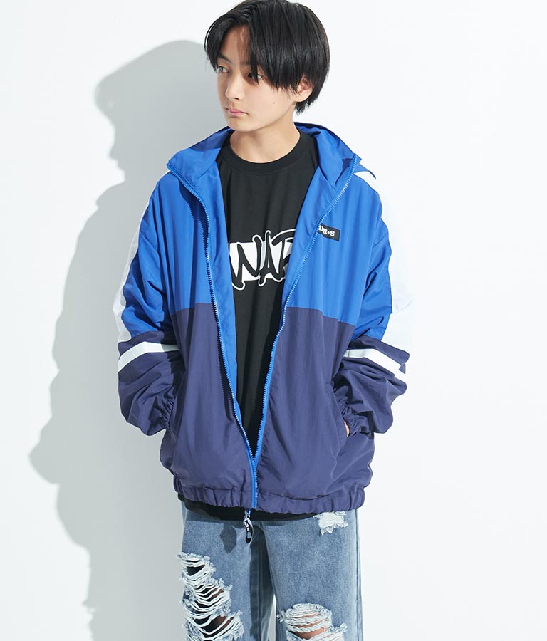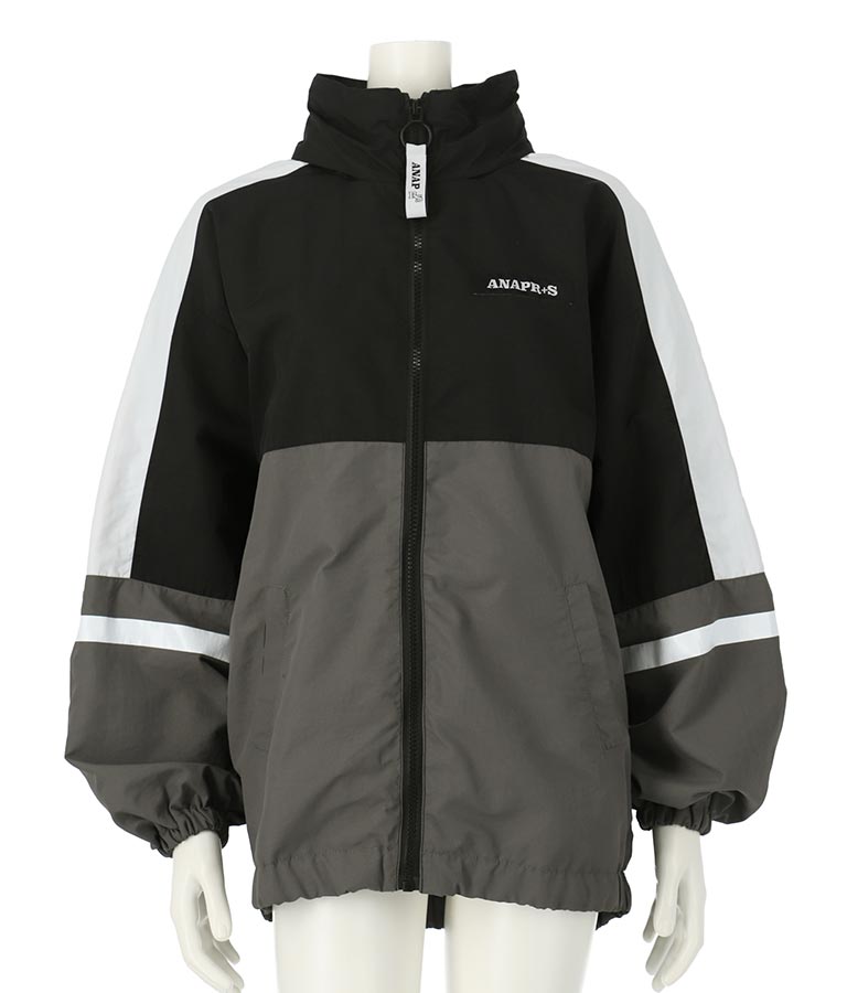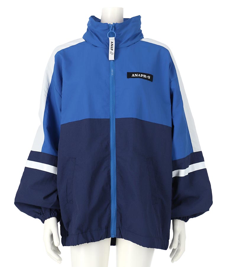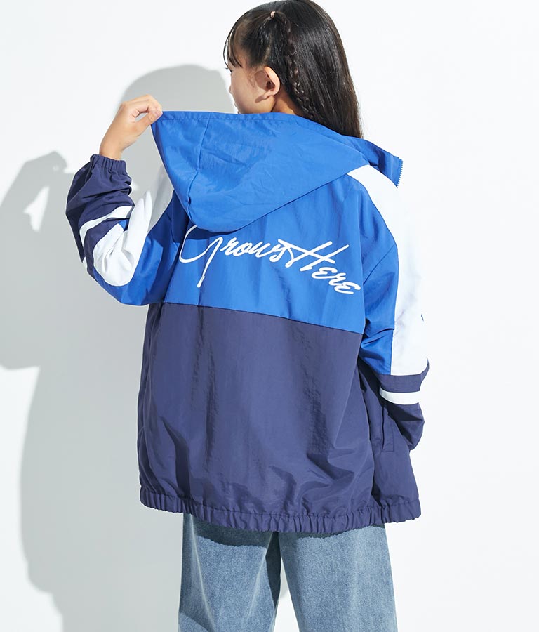 胸元のワッペンやバックプリントがポイントになった配色ブルゾン♪