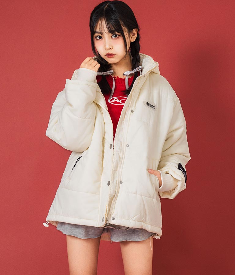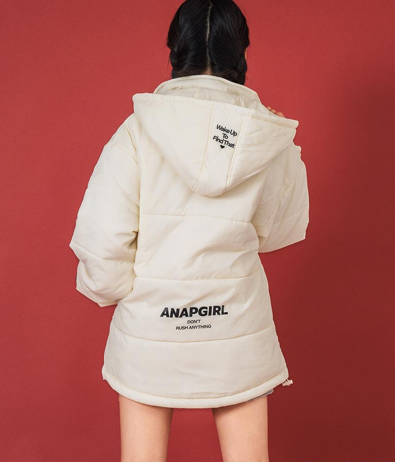 エコクラウド中綿を使用し、ヒップまで隠れるゆったりサイズでも軽さと暖かさを備えています。