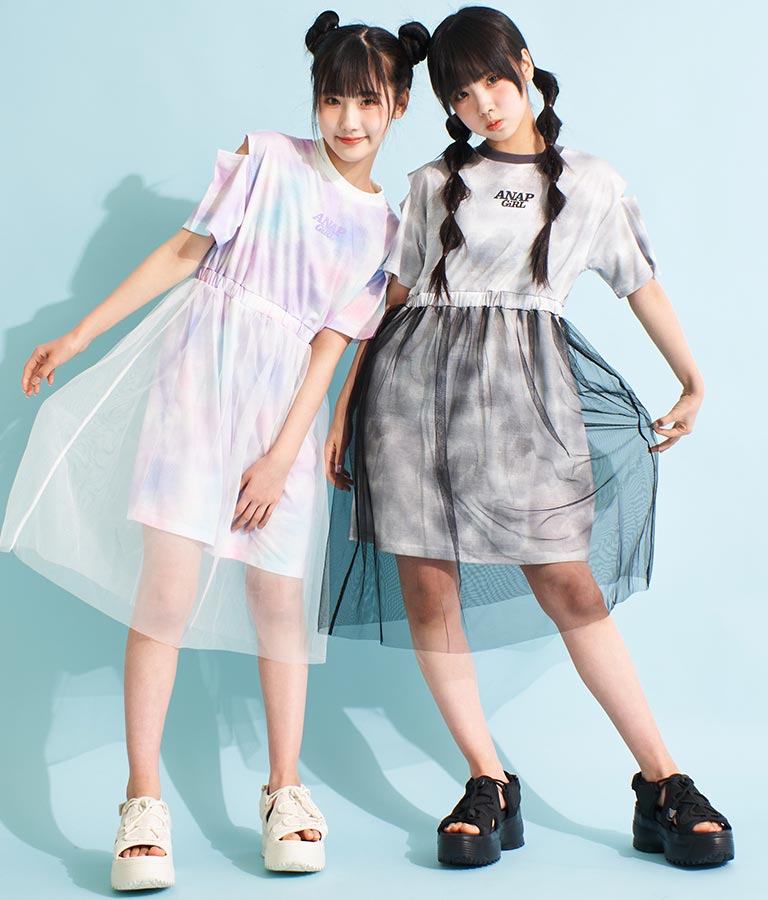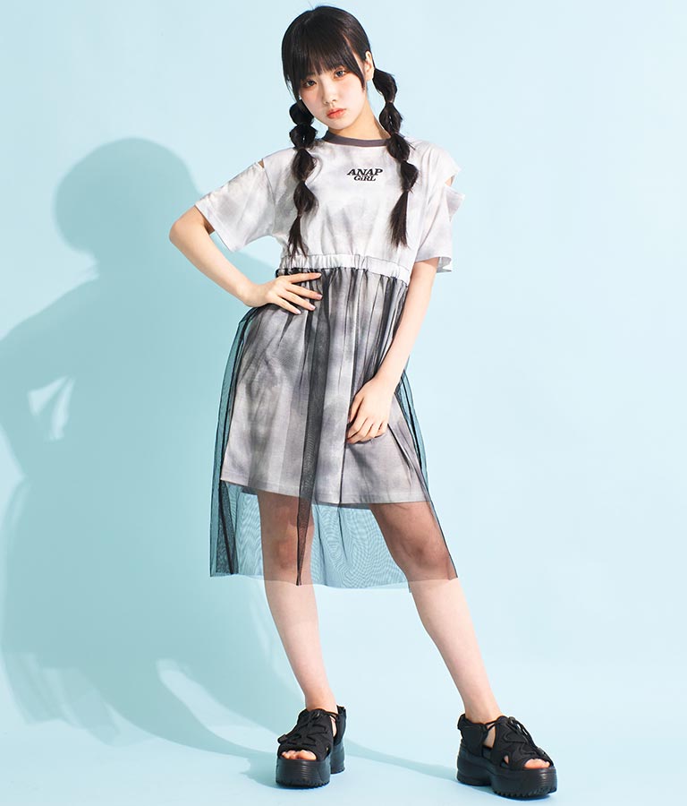 チュール 重ね タイダイ柄 ワンピース 917-7365