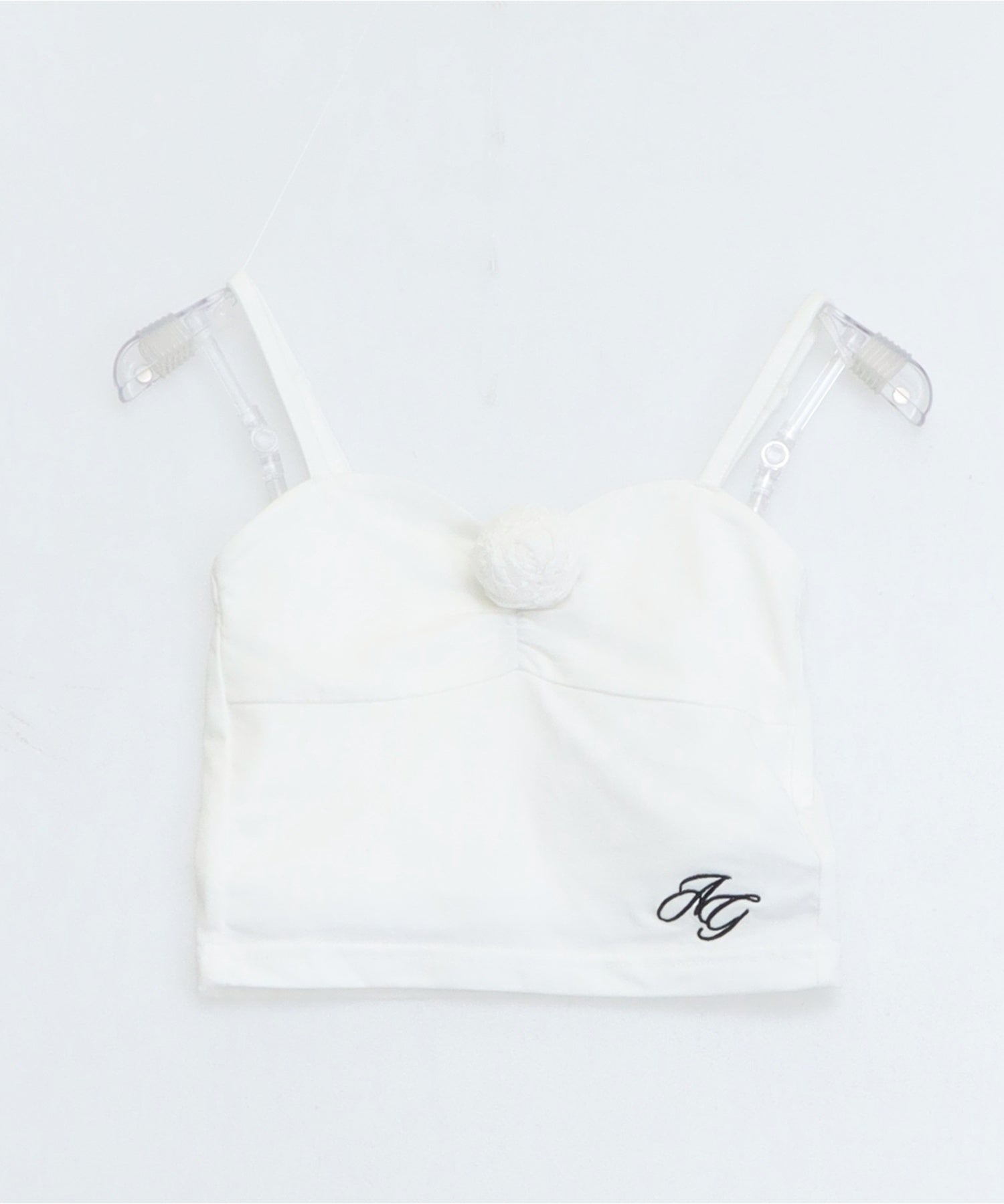インナーのキャミソールには立体的なバラモチーフをあしらい、上品さの中に愛らしさをプラスしています。