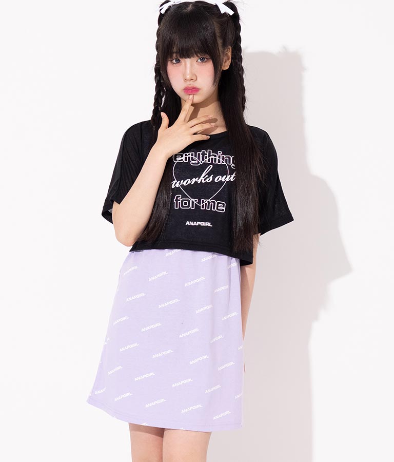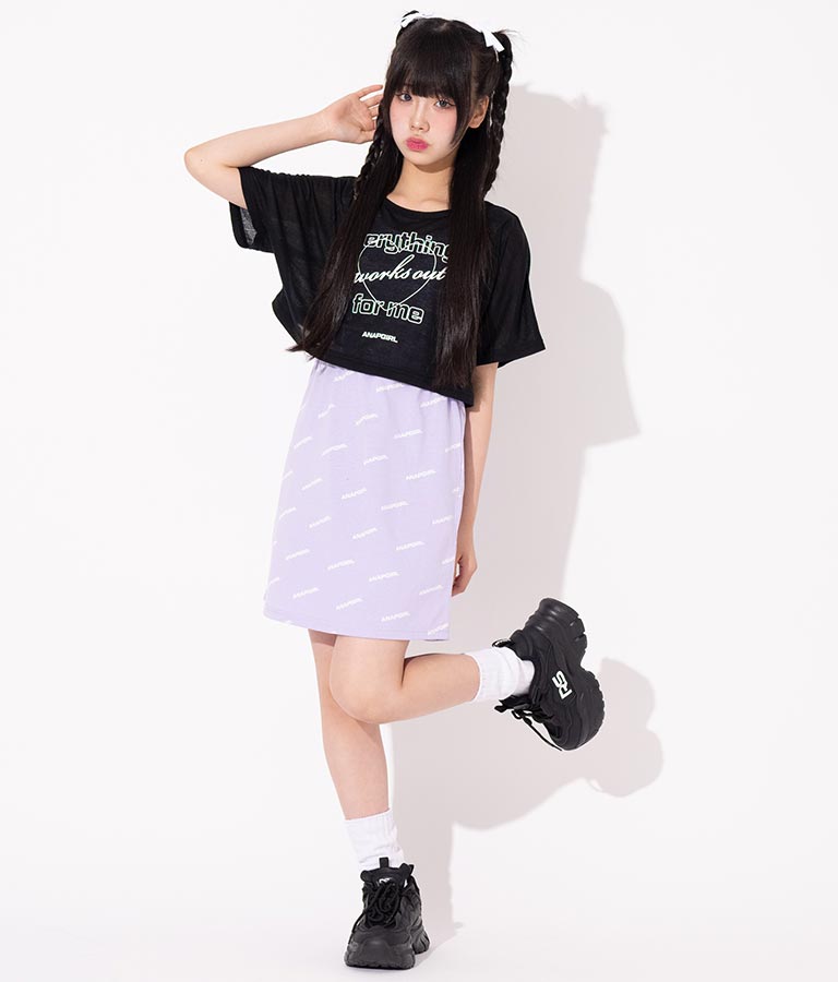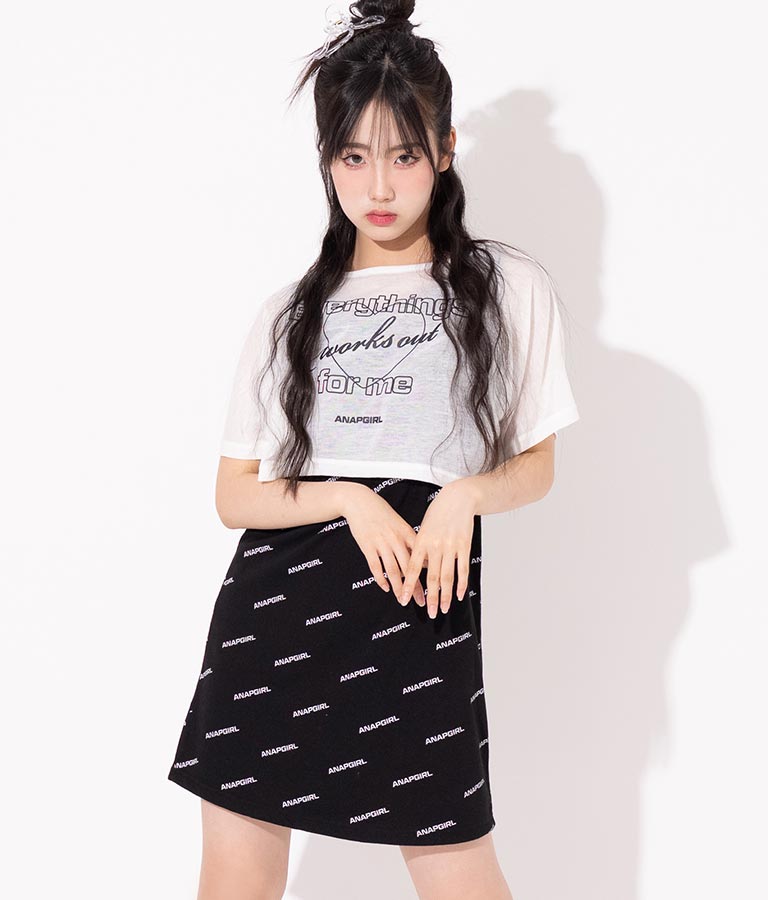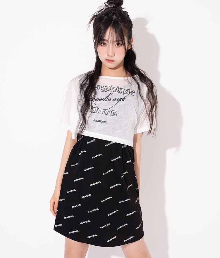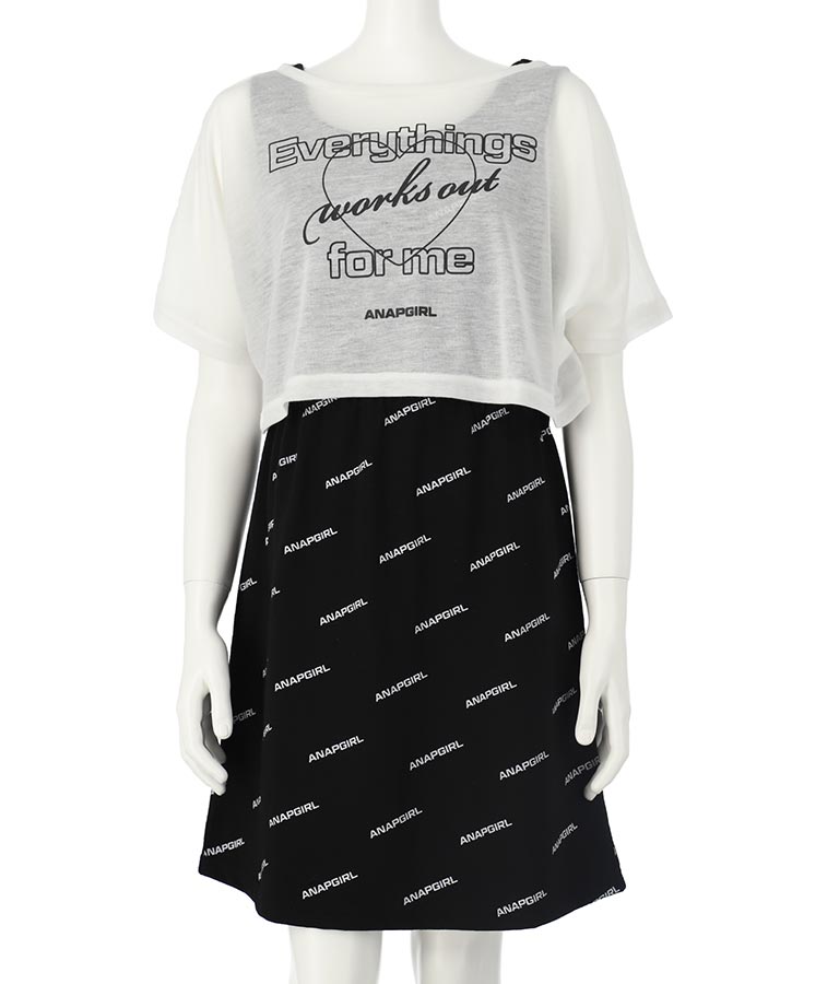 シアー トップス × ロゴ 柄 タンク ワンピース SET 918-7498