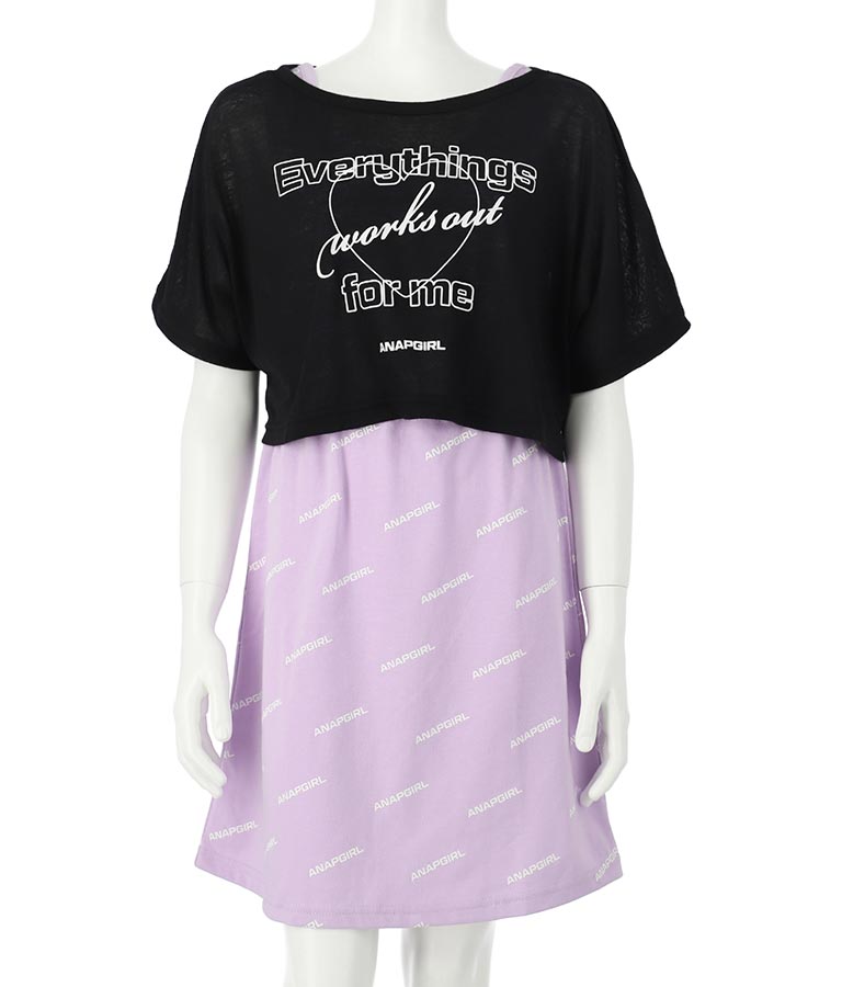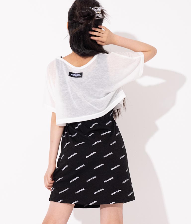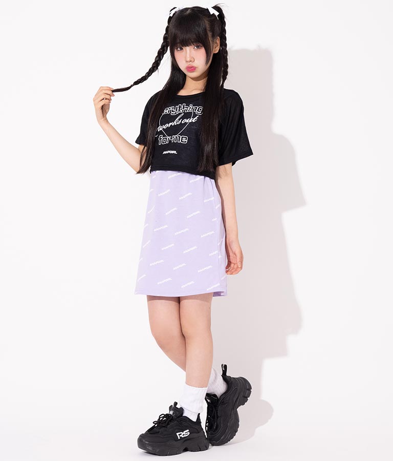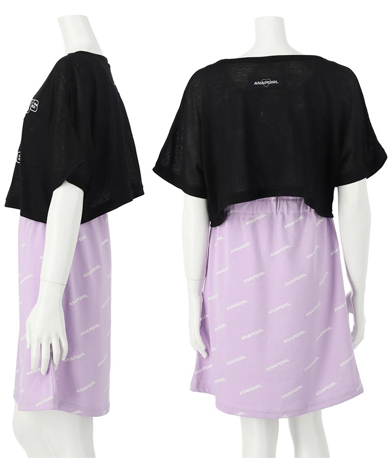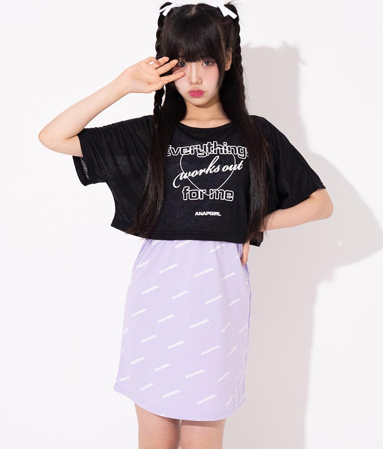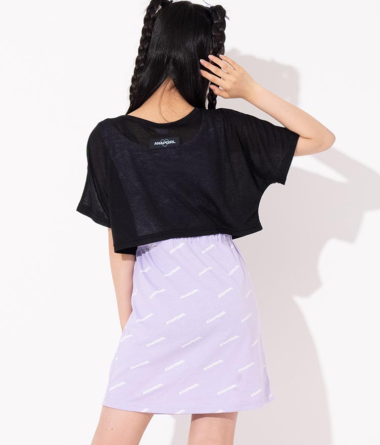 シアー トップス × ロゴ 柄 タンク ワンピース SET 918-7498