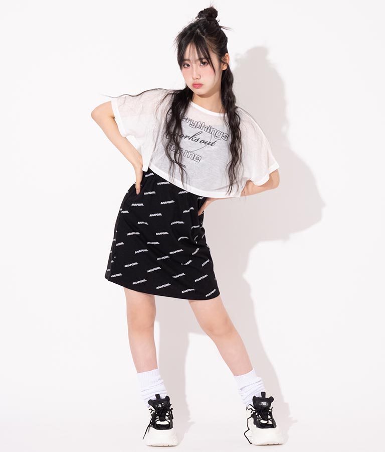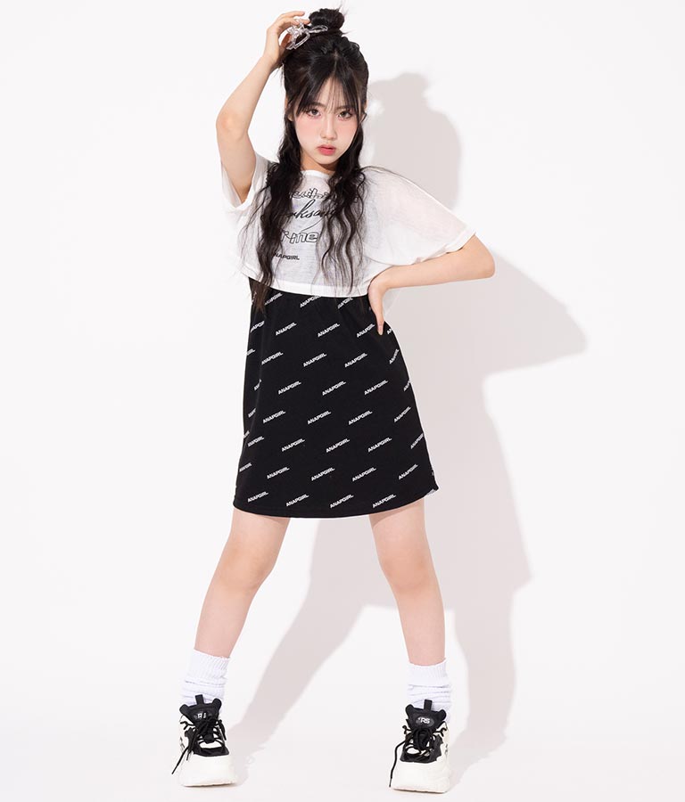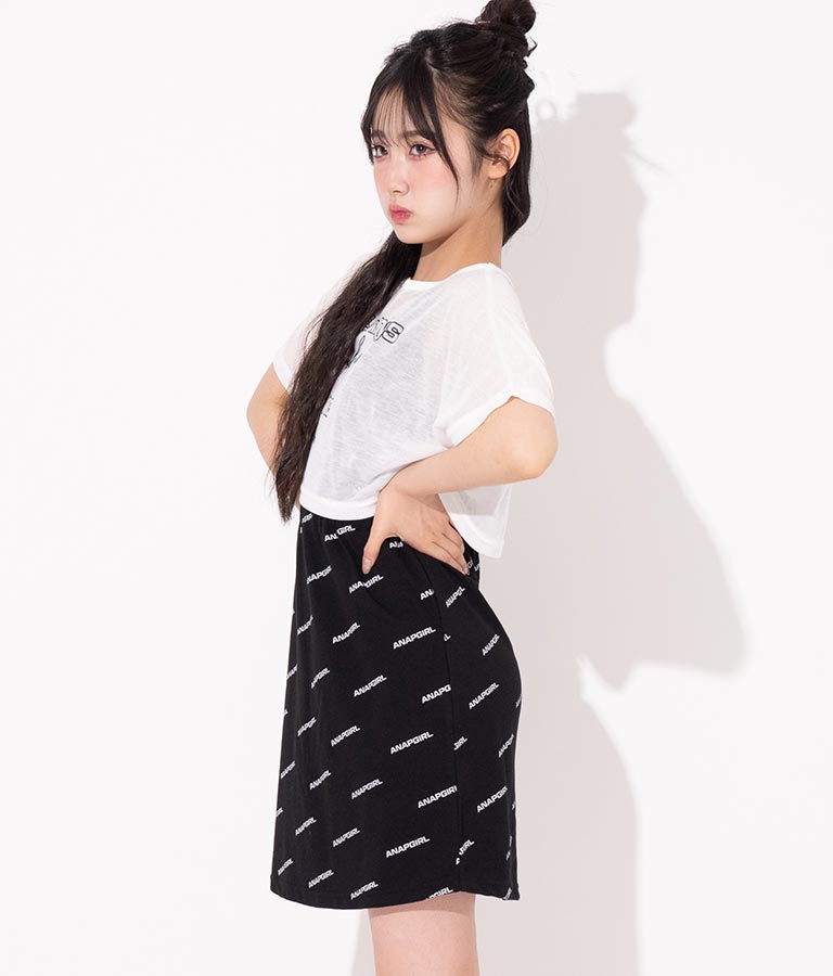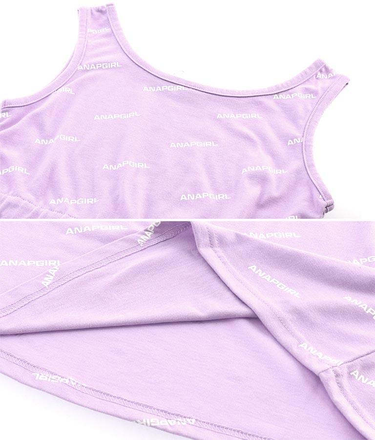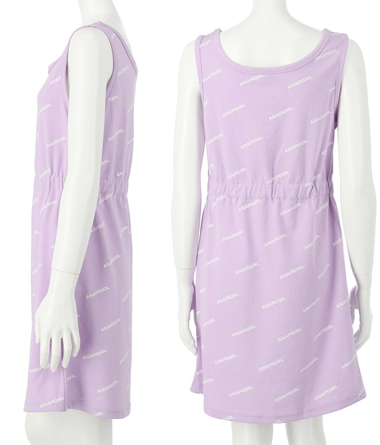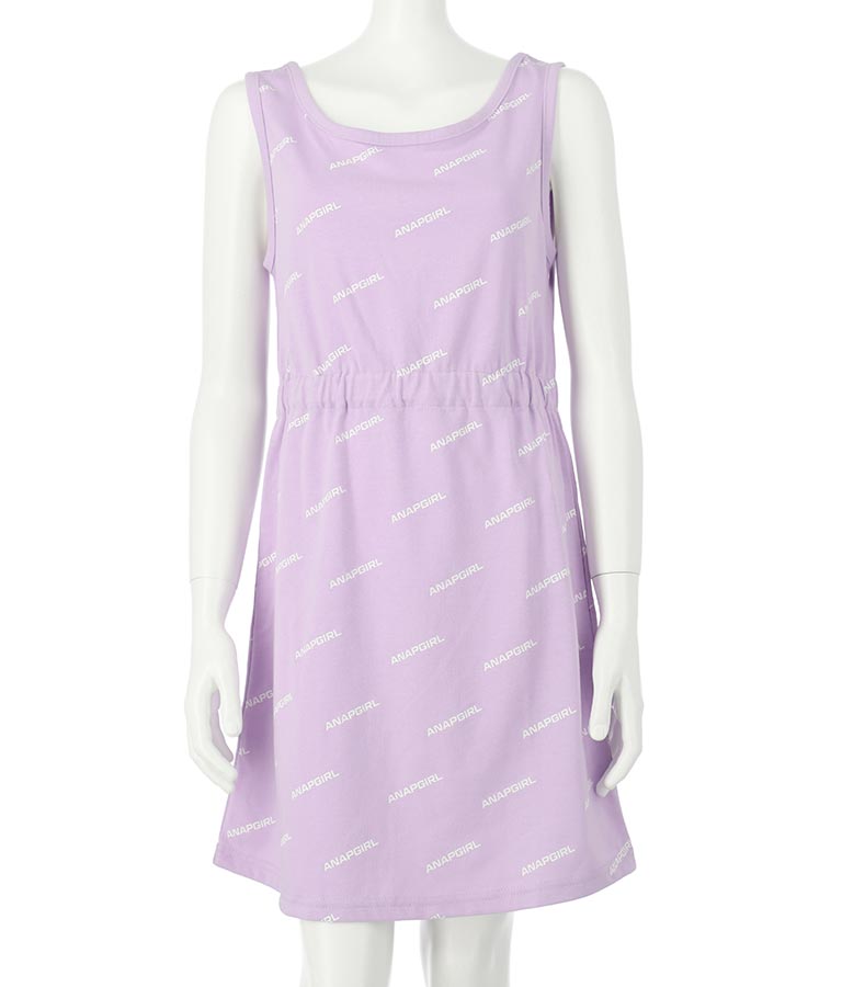 タンクワンピースはANAP GIRLの総ロゴプリントが目を惹き、ウエストゴムありなのですっきり見えます☆