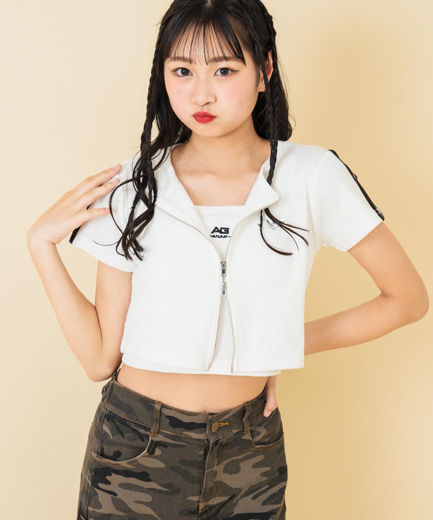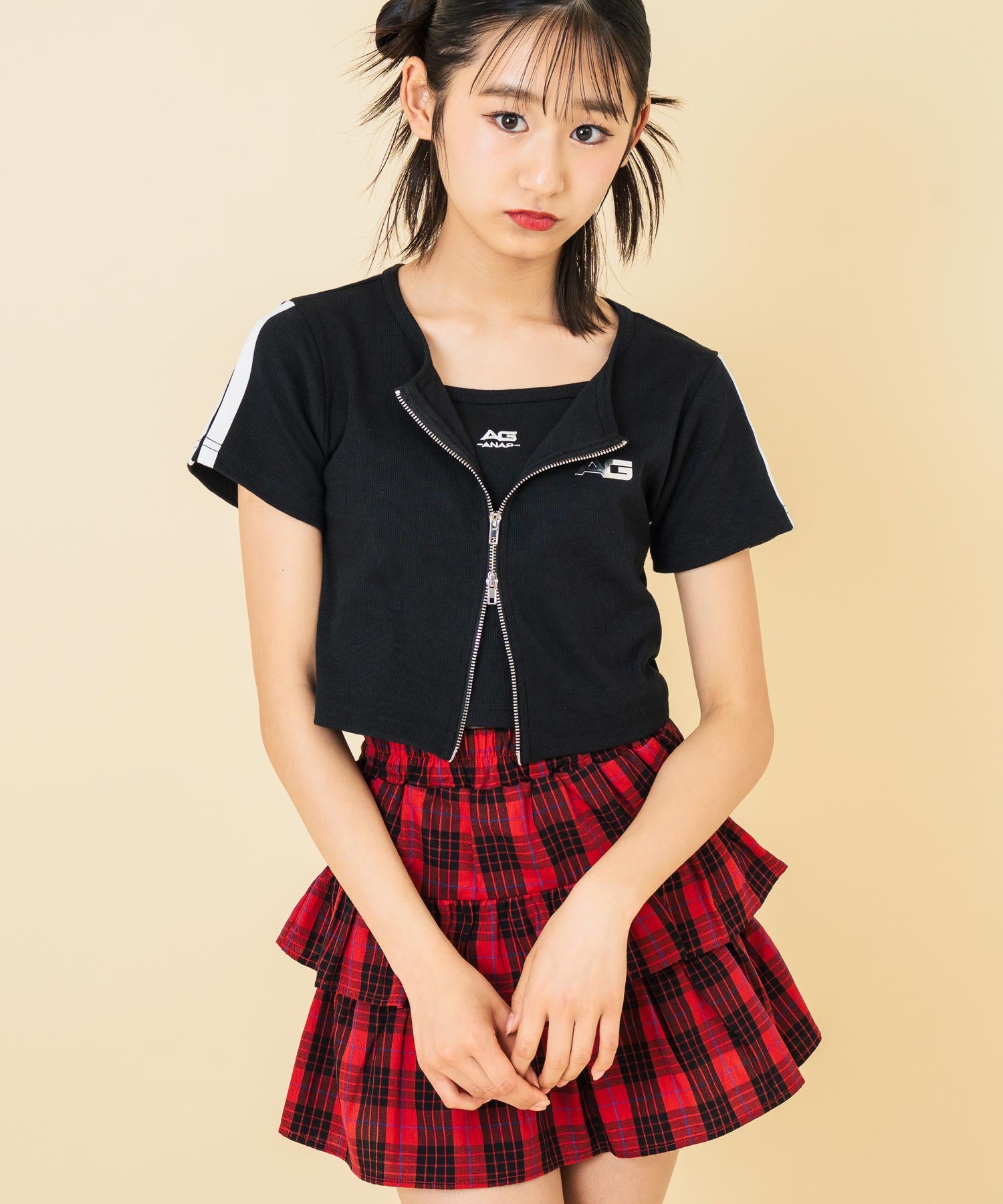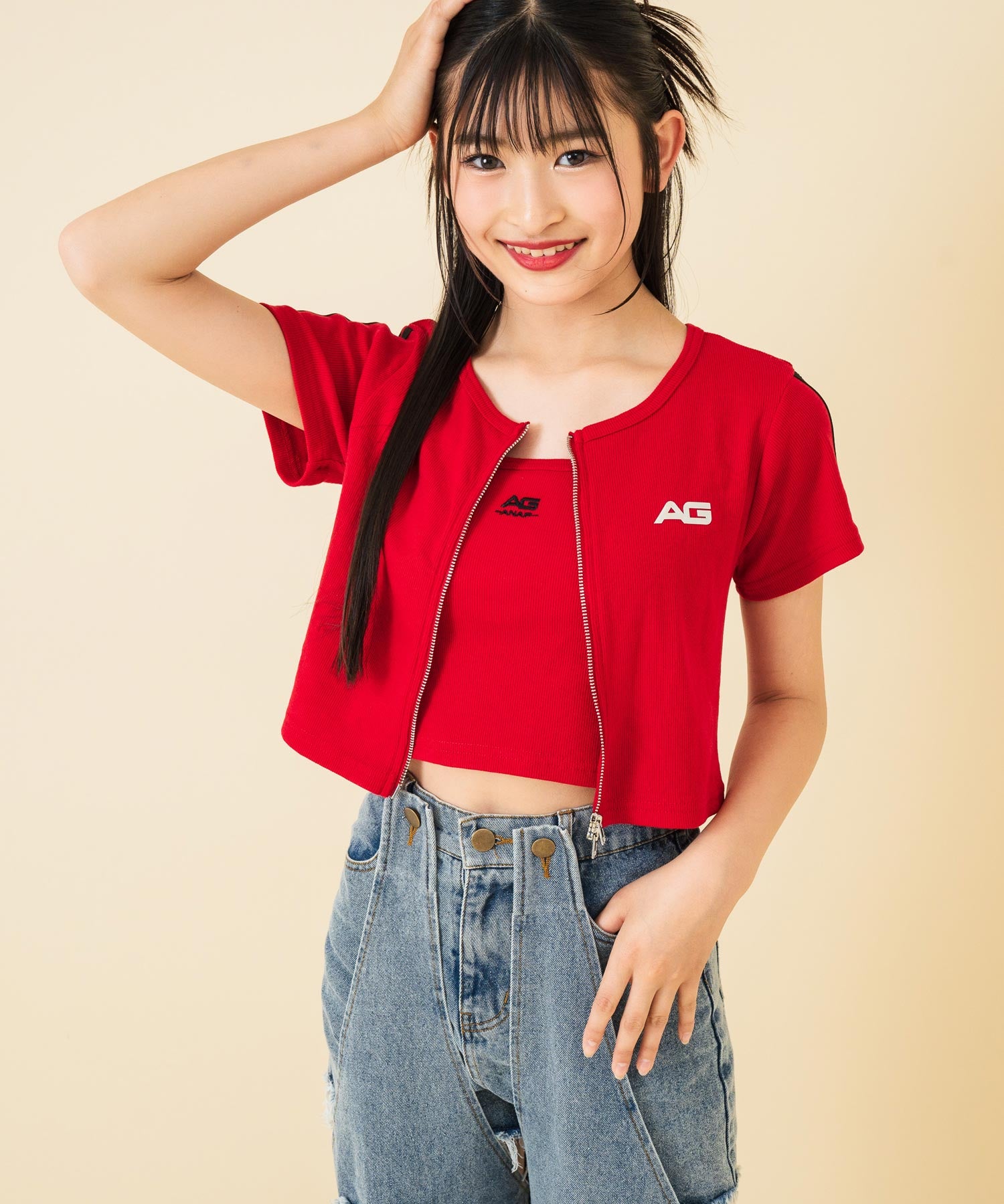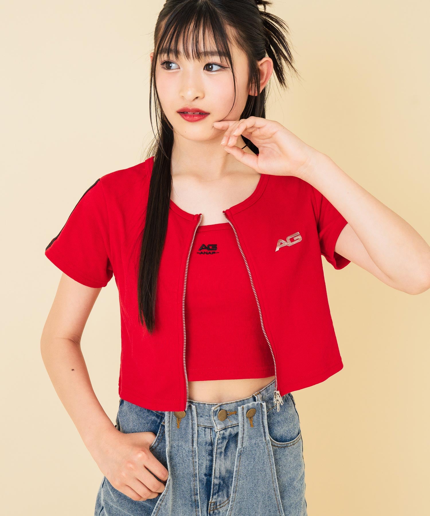 ライン入 ダブルジップ カーデ × キャミソール SET【キッズお揃い】 918-7667