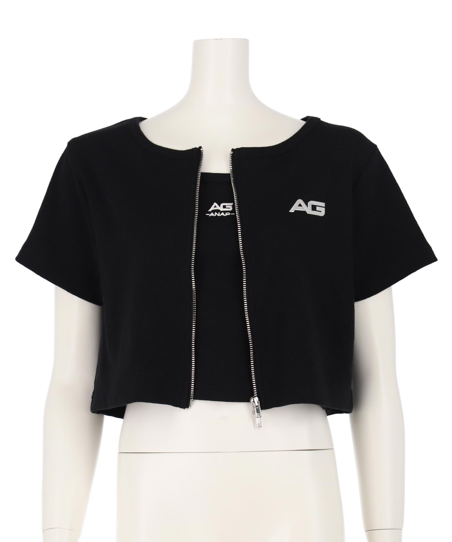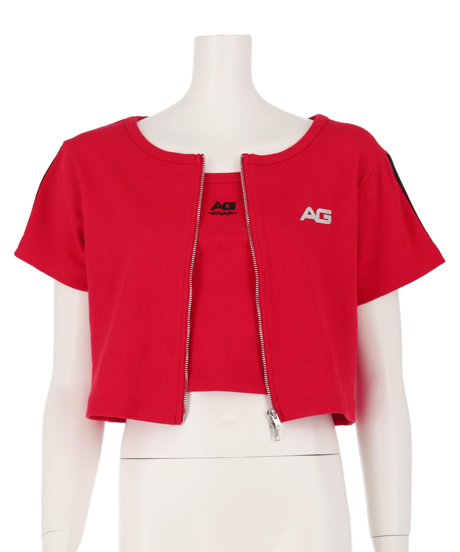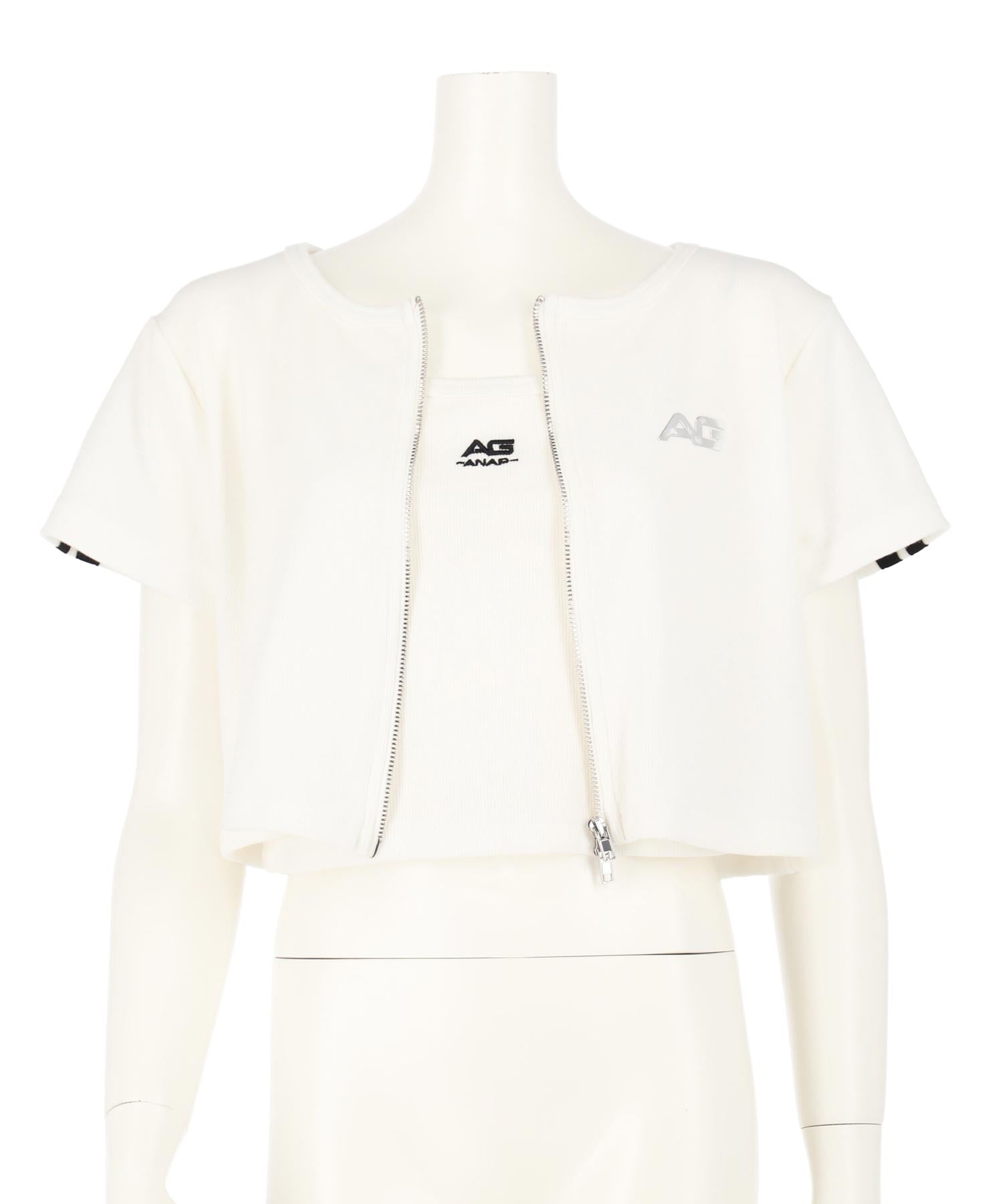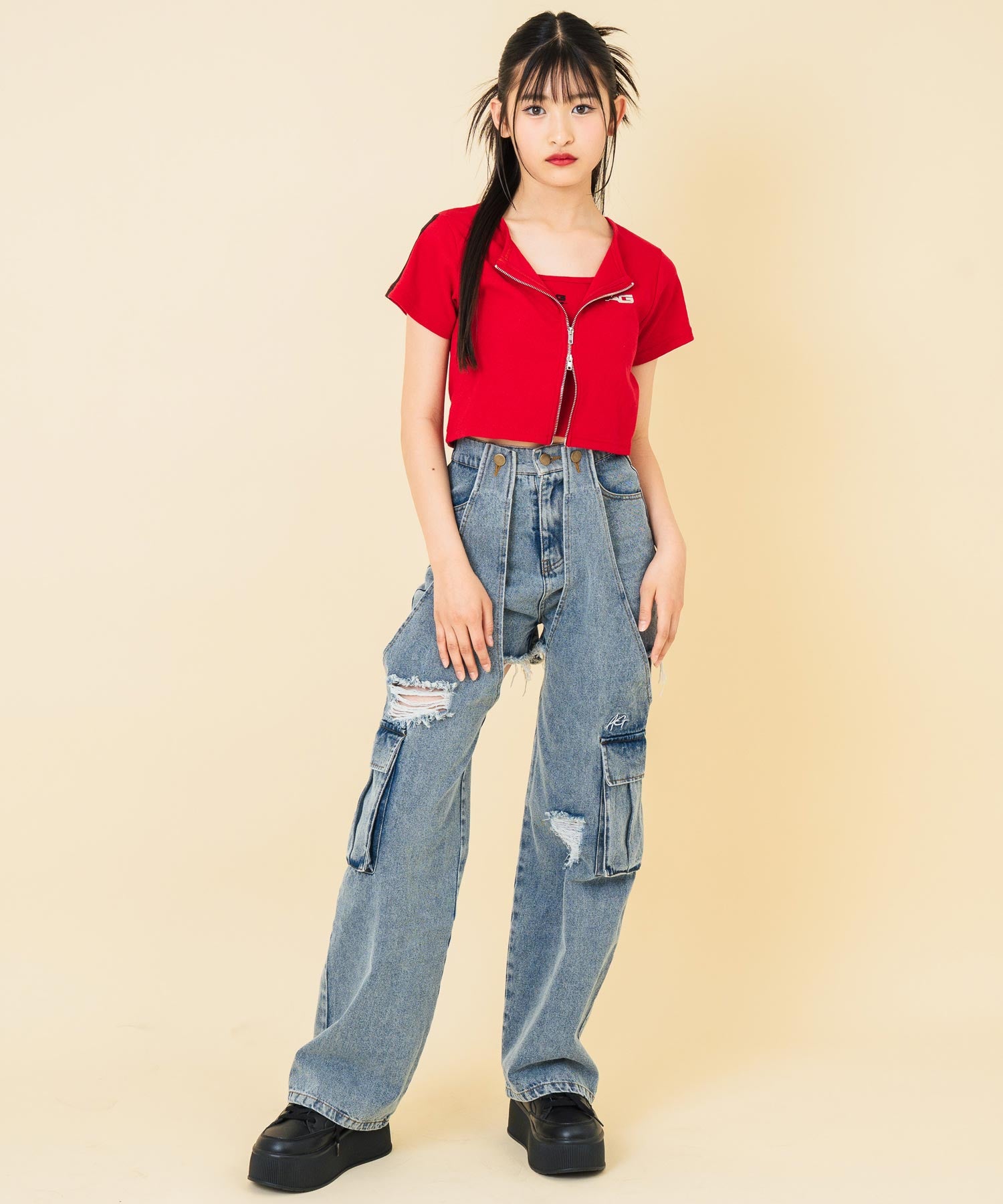 ライン入 ダブルジップ カーデ × キャミソール SET【キッズお揃い】 918-7667