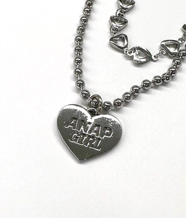 ミニサイズなのに存在感のあるハートチェーンとボールチェーン2種類の異なるデザインが組み合わせになったネックレス。