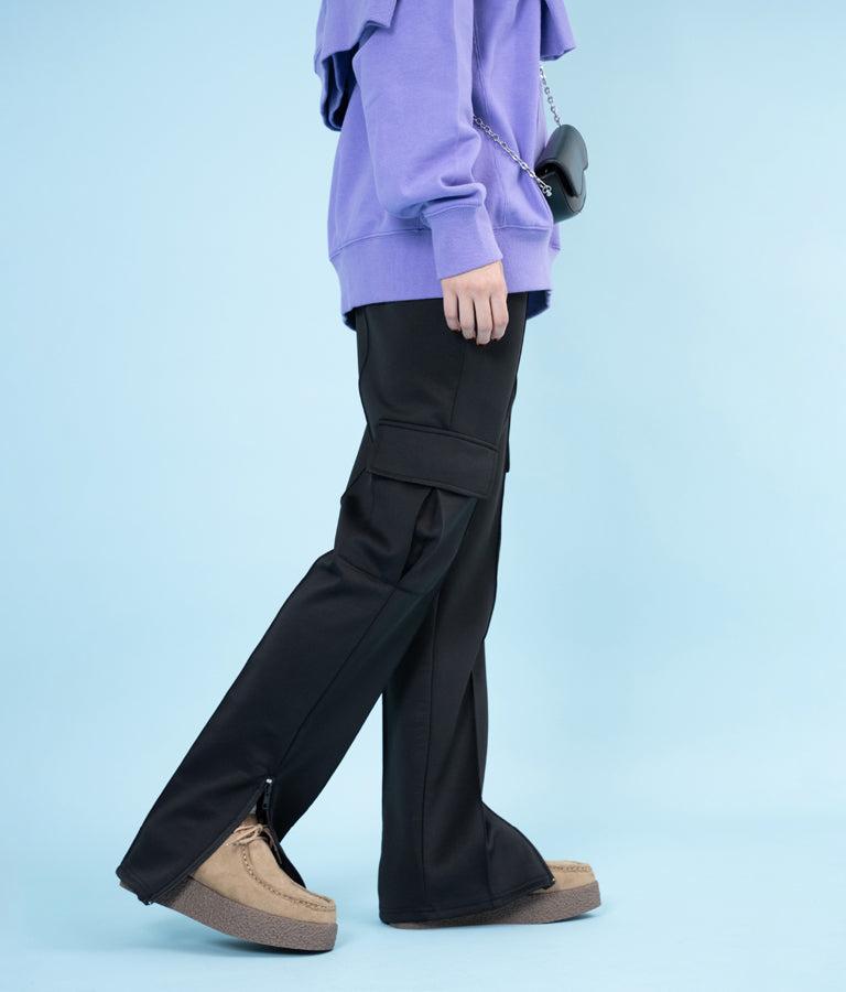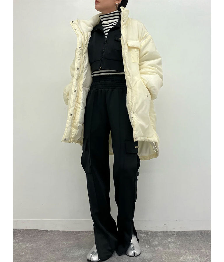 ファスナーで開閉可能なスリットが裾に施されており、開けて着用すると程よく抜け感のあるスタイリングに。
