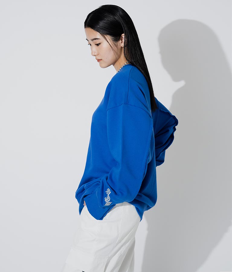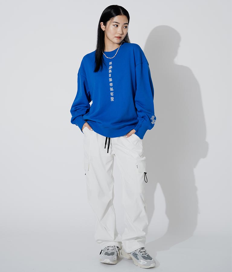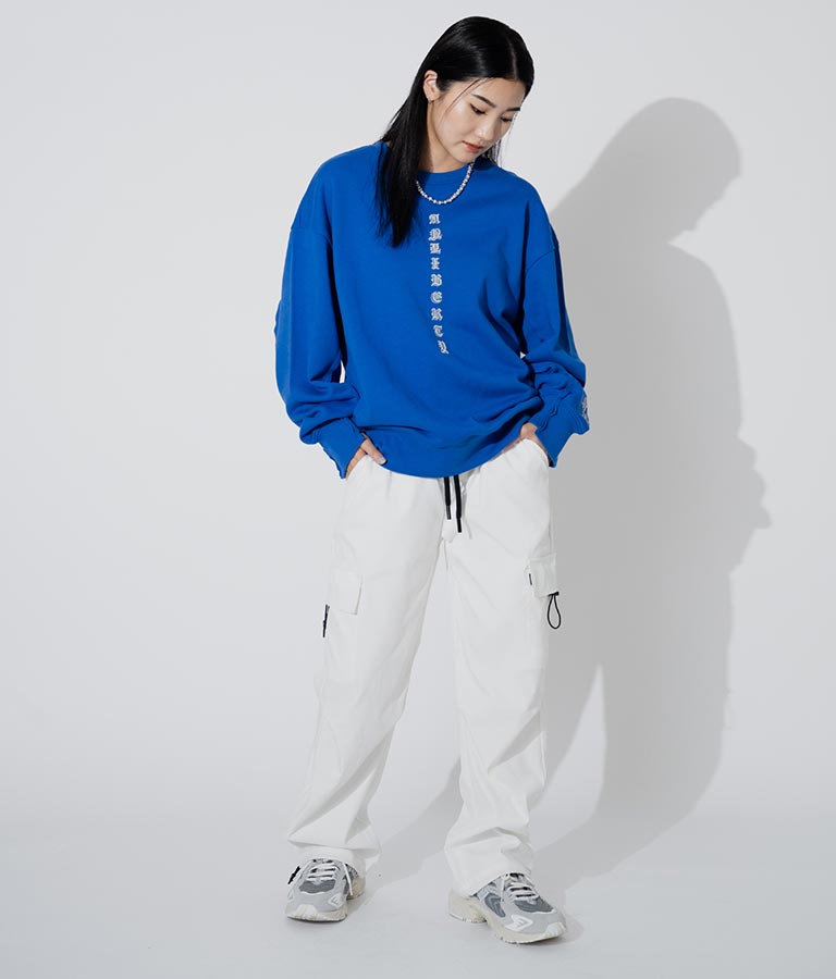 フロントだけでなく袖、バック部分にもロゴを施し、どの角度から見ても抜かりなく決まる1枚です。