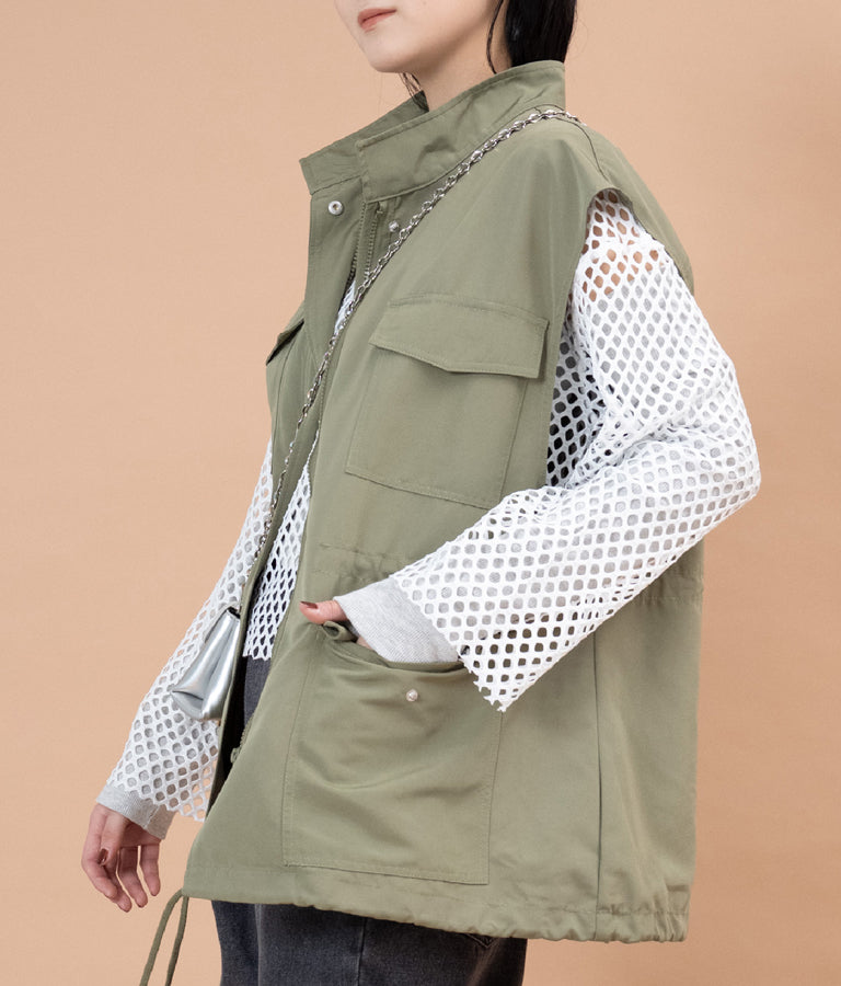 スタンドカラーポケット付きベスト