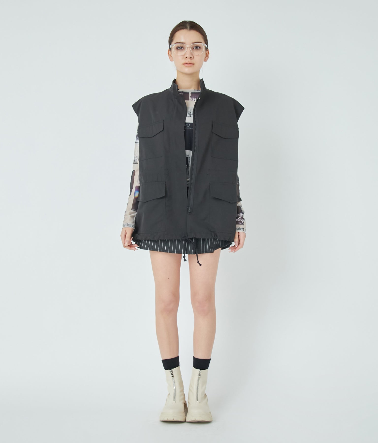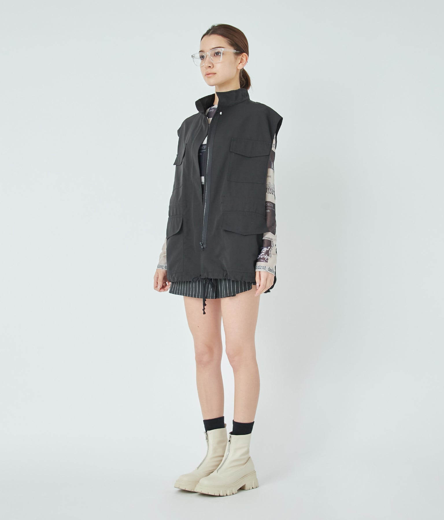 羽織るだけで一気に今っぽくなるスタンドカラーのベスト。