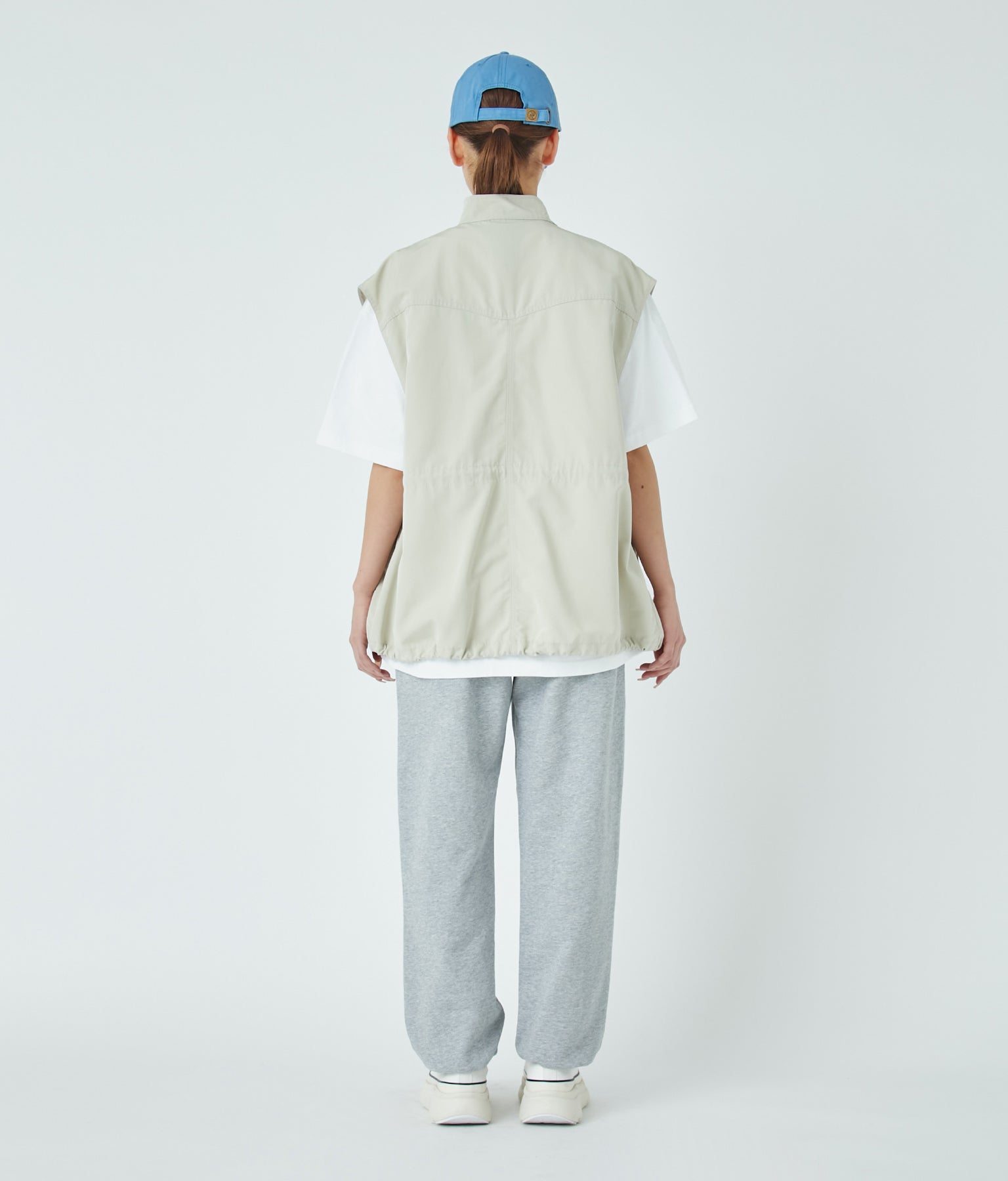 ウエスト、裾に絞りを調節できる紐が内側についているのでスタイリングに合わせてシルエットを変えることができます。