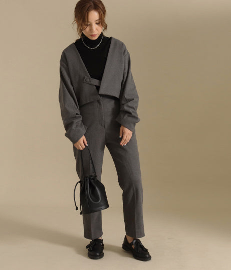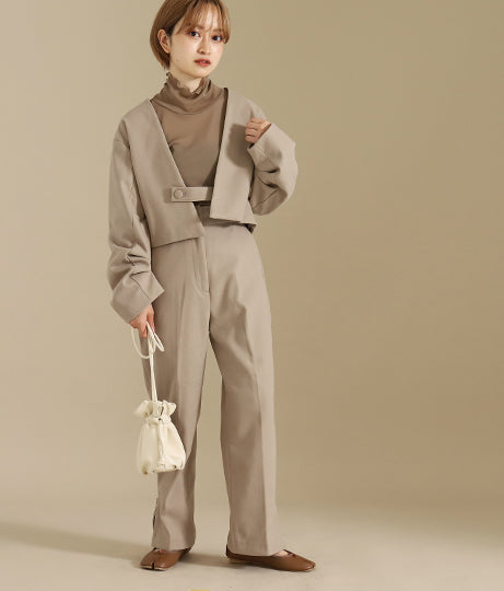 【低身長向けサイズ】ハイウエスト サイド ジップ センター プレス パンツ 83819