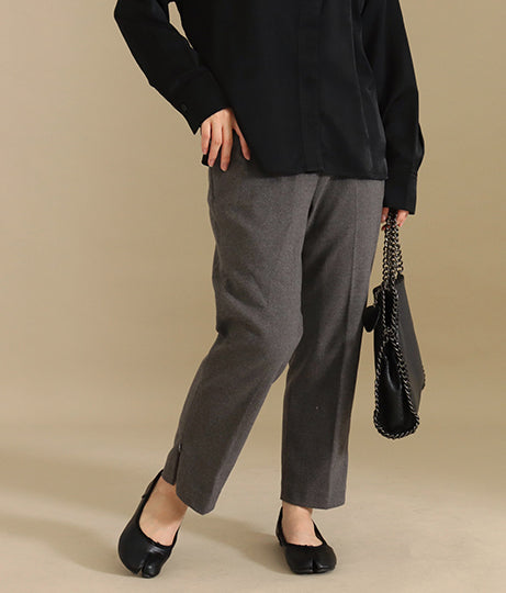 小柄さんが裾上げのお直しをしなくても履けるパンツにしました。