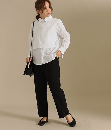 シルエットは細身のシンプルなパンツなので、カジュアルにもオフィスでも、
