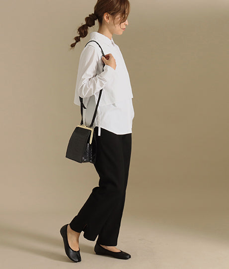 少しフレアシルエットになることで雰囲気も変わり、抜け感が出て足長効果も抜群です。